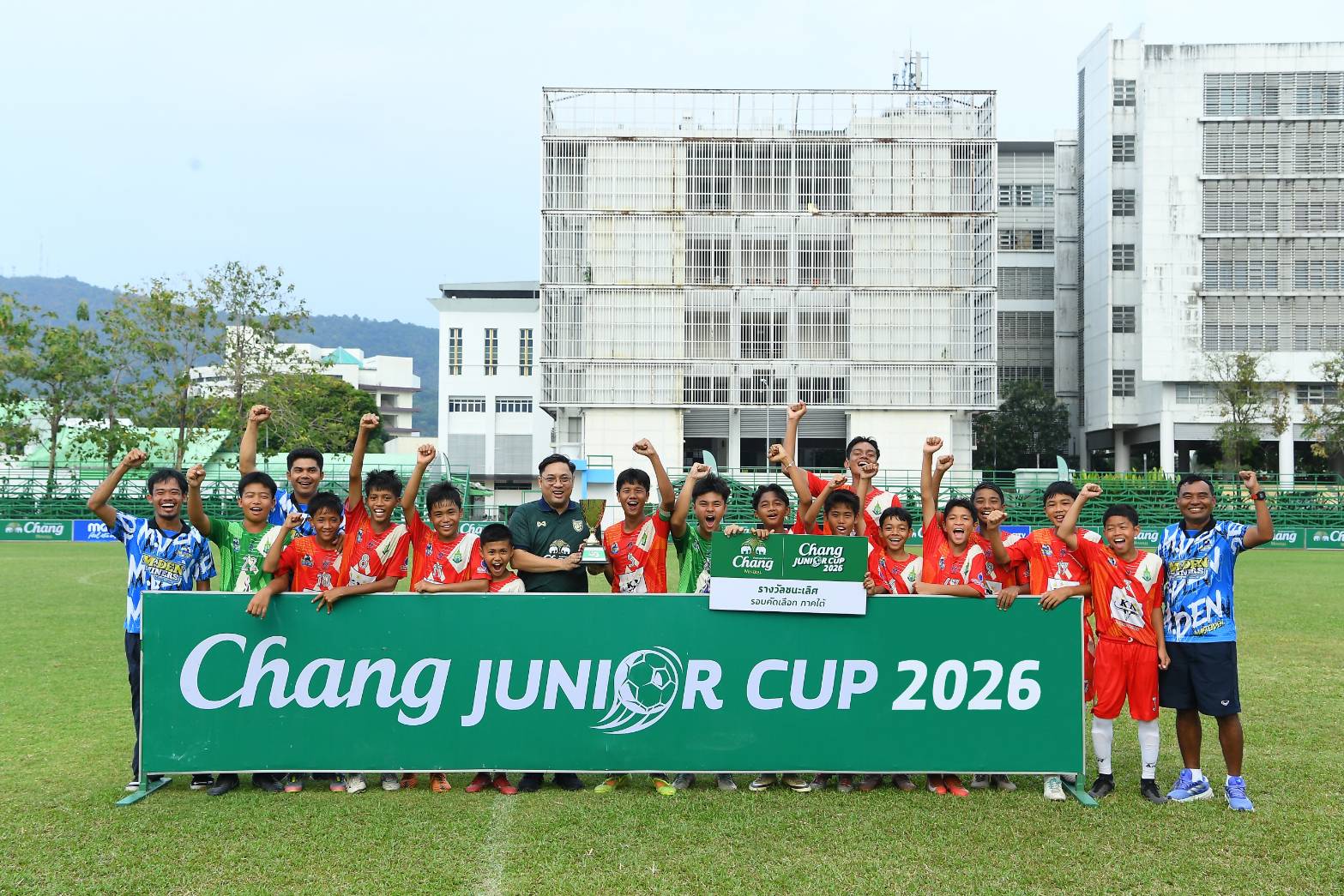 “Chang Junior Cup 2026” รอบคัดเลือกสนามที่ 2 จัดการแข่งขันขึ้นในโซนภาคใต้ ระหว่างวันที่ 8 - 11 เมษายน 2569 ณ สนามฟุตบอลมหาวิทยาลัยสงขลานครินทร์ จ.สงขลา มีทีมเข้าร่วมทั้งสิ้น 36 ทีม โดยการแข่งขันรอบชิงชนะเลิศ ได้รับเกียรติจาก คุณพรชัย อนะมาน ผู้จัดการอีเว้นท์ ภาค 8 บริษัท ช้าง อินเตอร์เนชั่นแนล จำกัด โดยน้ำแร่ธรรมชาติตราช้าง พร้อมด้วยคุณอัคคะไกร มหาศรี นายกสมาคมพัฒนากีฬาหาดใหญ่ ร่วมชมการแข่งขันและมอบรางวัล