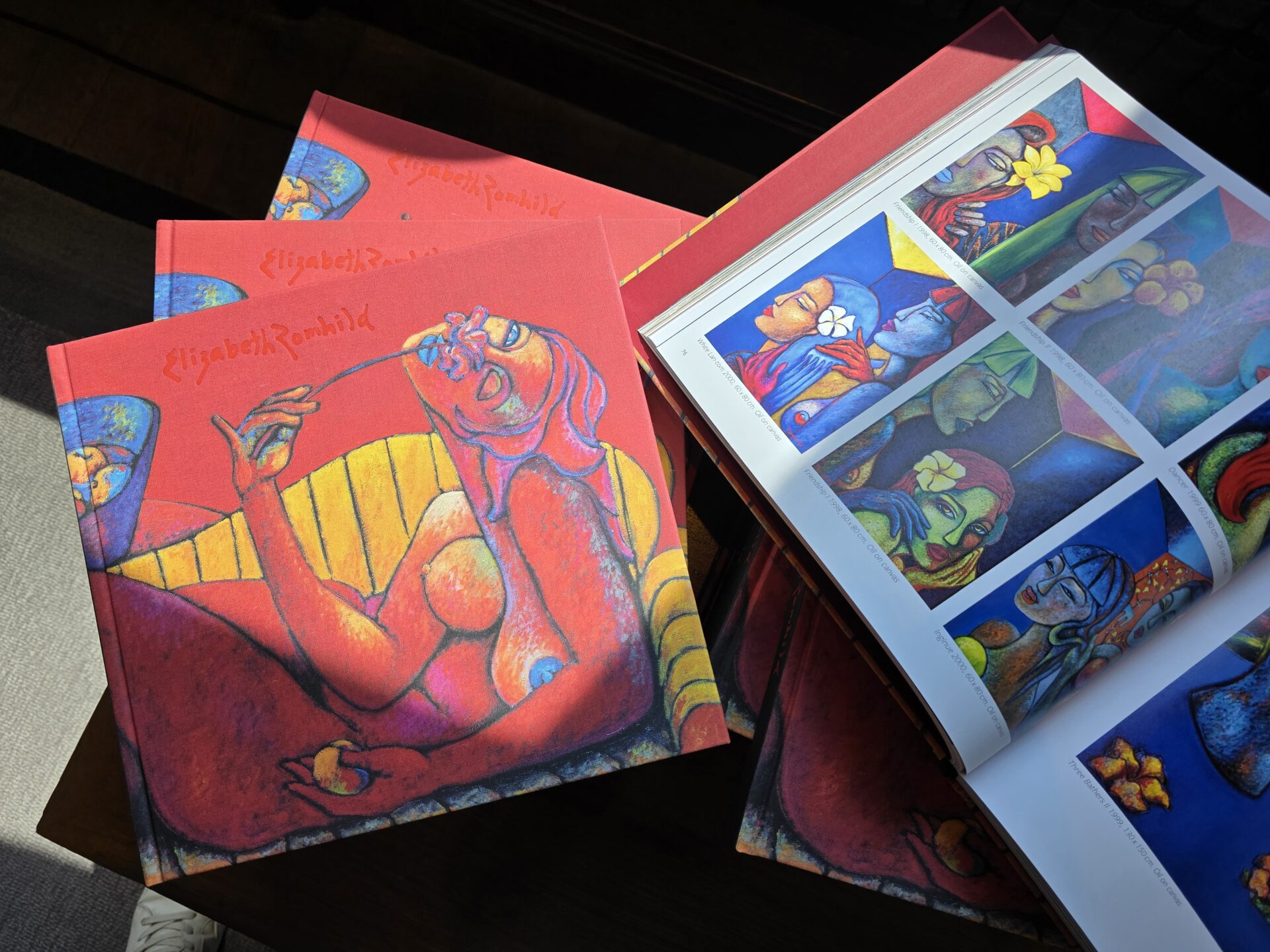หนังสือ Elizabeth Romhild’s Odyssey นำเสนองานศิลปะของอลิซาเบธ ประกอบด้วยภาพสะท้อนความเป็นแม่ของศิลปิน โดยนำความกลมของผลส้มเป็นสัญลักษณ์แทนเรือนร่างของผู้หญิง วงกลมกลายเป็นตัวแทนของความเป็นหญิงและความรักอันเป็นนิรันดร์ ต่อมากลายเป็นองค์ประกอบสำคัญในงานศิลปะ ขณะที่สีน้ำเงินเข้มกลายมาเป็นโทนสีหลักที่ใช้ตลอดหลายปีต่อมา