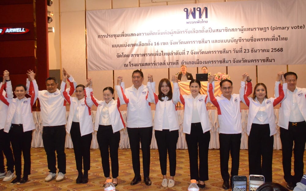 23 ธันวาคม 2568 - ที่โรงแรมสตาร์เวลล์ บาหลี ต.จอหอ อำเภอเมือง จ.นครราชสีมา พรรคเพื่อไทย บ้านใหญ่โคราช ได้มีว่าที่ผู้สมัคร สส.นครราชสีมา ทั้ง 16 เขตเลือกตั้ง และผู้สมัคร สส.บัญชีรายชื่อและสมาชิกพรรครวมกว่า 200 คน นำโดย น.ส.สุดาวรรณ หวังศุภกิจโกศล รองหัวหน้าพรรคเพื่อไทย ผู้สมัครบัญชีรายชื่อพรรคเพื่อไทย เป็นประธานการประชุมเพื่อแสดงความคิดเห็นต่อผู้สมัครรับเลือกตั้งเป็นสมาชิกสภาผู้แทนราษฎร (ไพรมารีโหวต) แบบแบ่งเขตเลือกตั้ง 16 เขต จ.นครราชสีมาและแบบบัญชีรายชื่อพรรคเพื่อไทย จัดโดยสาขาพรรคเพื่อไทย ลำดับที่ 7 จ.นครราชสีมา เข้าร่วมในการโหวดกันอย่างพร้อมเพรียง และเป็นไปในทิศทางเดียวกัน