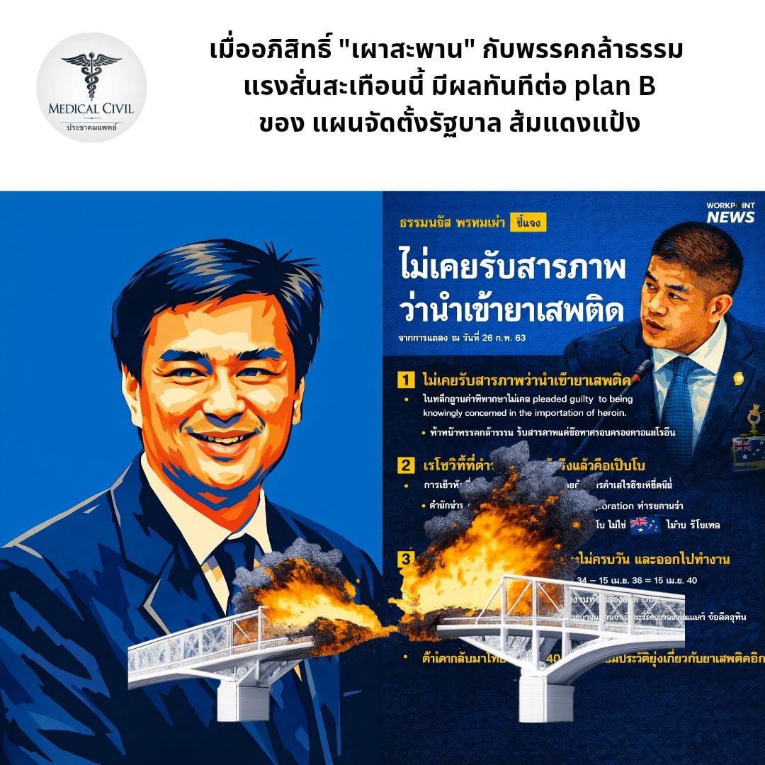 24 ธ.ค.2568 – เพจประชาคมแพทย์ได้โพสต์ในลักษณะบทความเรื่อง “ประชาธิปัตย์ขีดเส้นแดง และ เผาสะพานจริง เมื่อคำว่า “ไทยไม่เทา” ไม่ใช่แค่คำพูด แบบพรรคประชาชน แต่คือการเผาสะพานทางการเมือง แบบประชาธิปัตย์” ระบุว่า การออกมาประกาศของอภิสิทธิ์ เวชชาชีวะ ว่า พรรคประชาธิปัตย์ “ไม่สามารถอยู่ร่วมรัฐบาลเดียวกับ พรรคกล้าธรรม ได้” ไม่ใช่เพียงถ้อยคำหนึ่งในเวทีดีเบต แต่คือ การตัดสินใจเชิงยุทธศาสตร์ ที่สั่นทั้งกระดานการเมือง เพราะนี่ไม่ใช่การโจมตีเชิงวาทกรรม แต่คือการขีดเส้นแดงทางจริยธรรมอย่างเป็นรูปธรรม