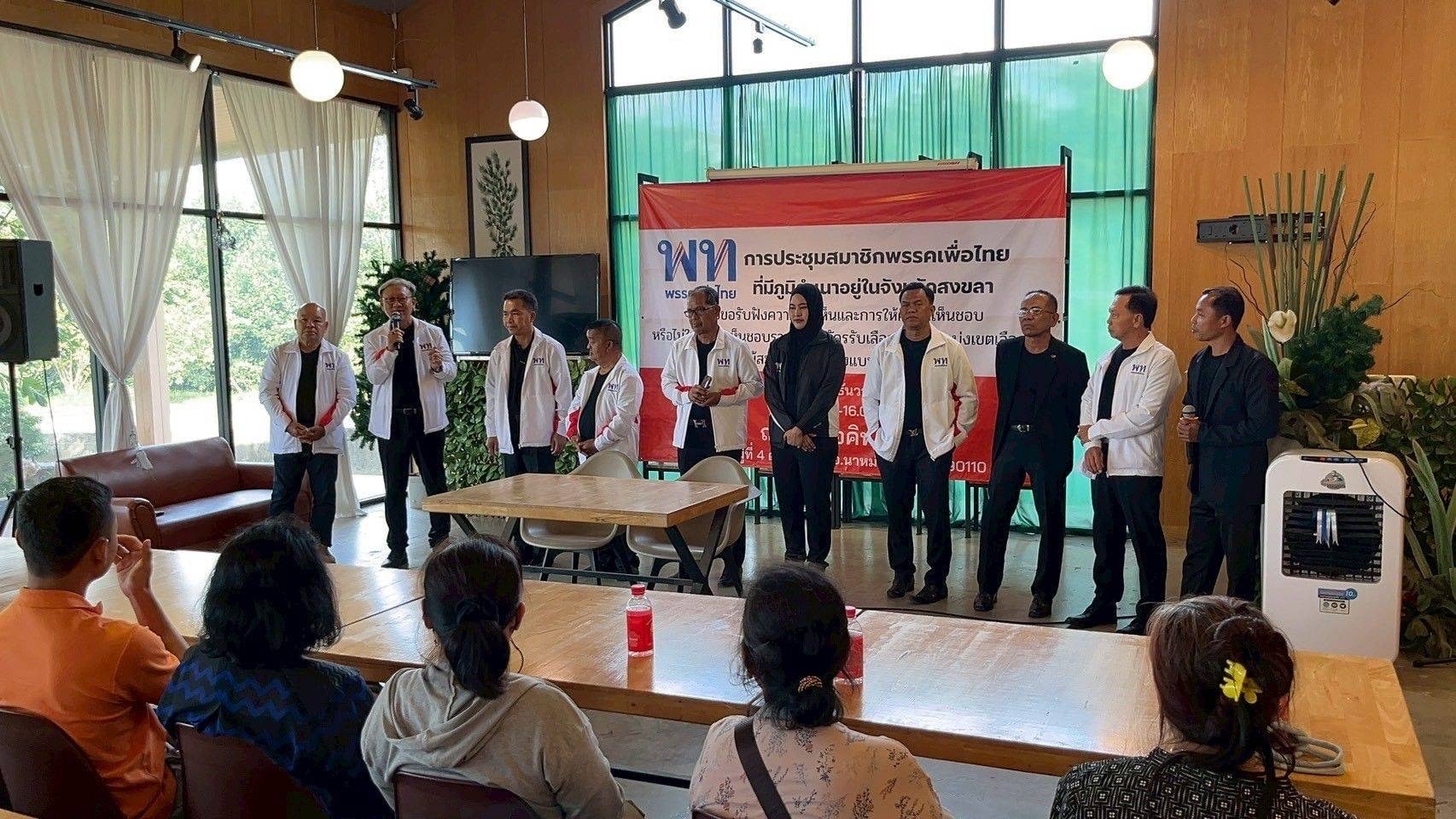 24 ธ.ค.2568 - มีรายงานว่าที่ร้านไอคิทเซ่น ต.นาหม่อม อ.นาหม่อม จ.สงขลา ได้ประชุมสมาชิกพรรคเพื่อไทย รับฟังความคิดเห็นและการให้ความเห็นชอบหรือไม่ให้ความเห็นชอบรายชื่อผู้สมัครรับเลือกตั้งแบบแบ่งเขตเลือกตั้ง และผู้สมัครรับเลือกตั้งแบบบัญชีรายชื่อพรรคเพื่อไทยสงขลา มีผู้เข้าร่วมประมาณ 200 คน