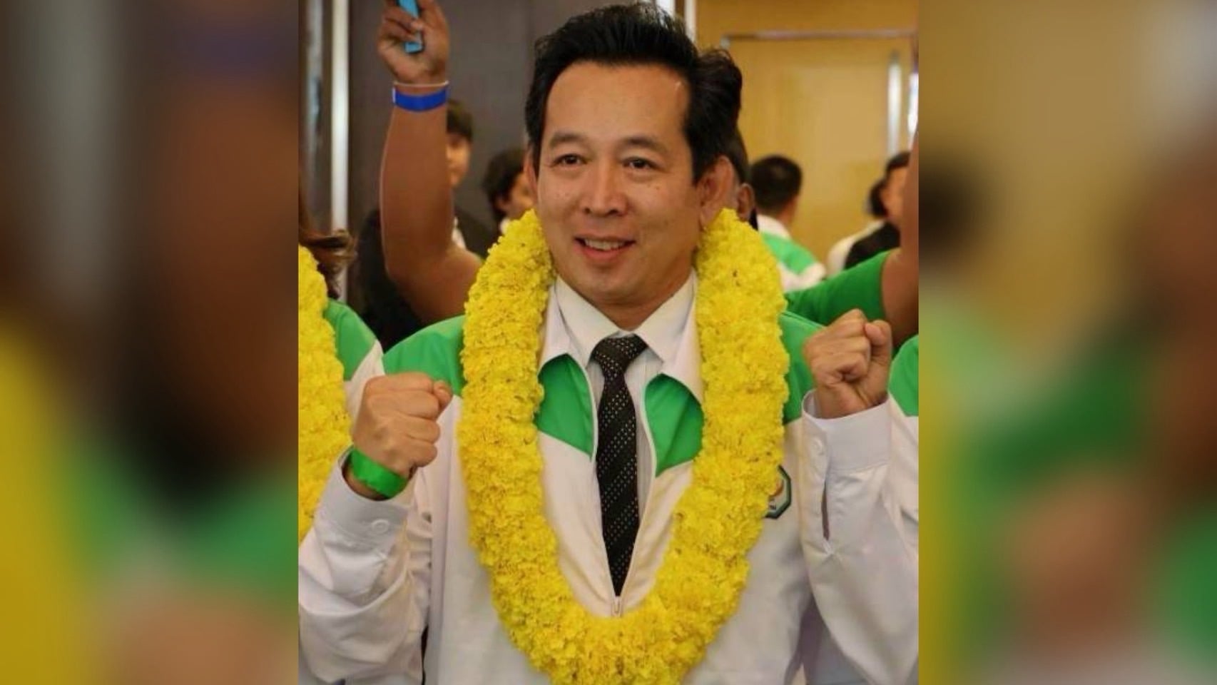 นายอนุทิน ชาญวีรกูล นายกรัฐมนตรีและรมว.มหาดไทย ในฐานะหัวหน้าพรรคภูมิใจไทย พร้อมด้วย นางสาวธนนนท์ นิรามิษ ภริยา เดิน