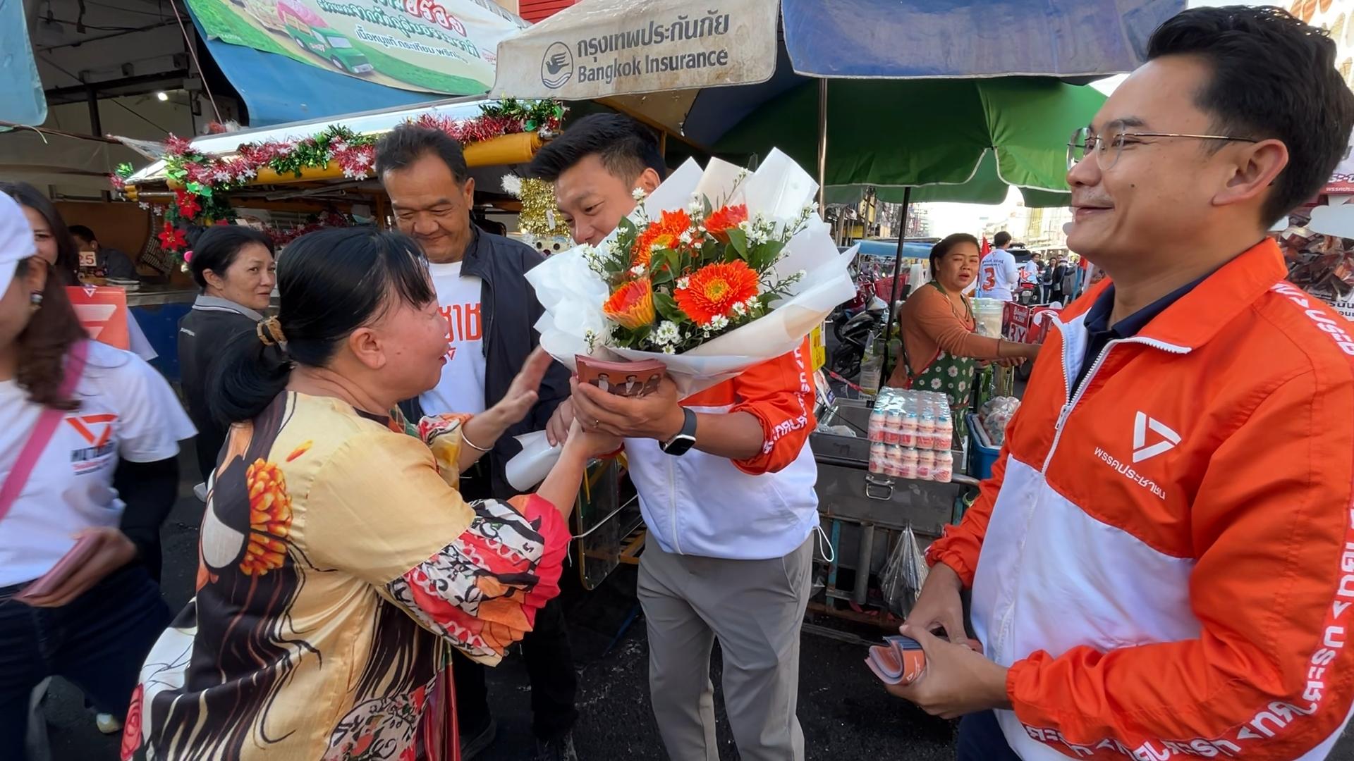 ขณะเดียวกันคณะหาเสียงของพรรคประชาชนยังคงเดินทางไปต่อที่ตลาดจอมพล เขตเทศบาลนครขอนแก่น มีชาวบ้านเข้ามาขอถ่ายภาพ พร้อมกับให้กำลังใจเชียร์ และถึงกับร้องไห้ออกมาด้วยความดีใจที่ได้เจอกับคุณเท้ง และยืนยันว่าจะเลือกพรรคประชาชนเหมือนเดิม