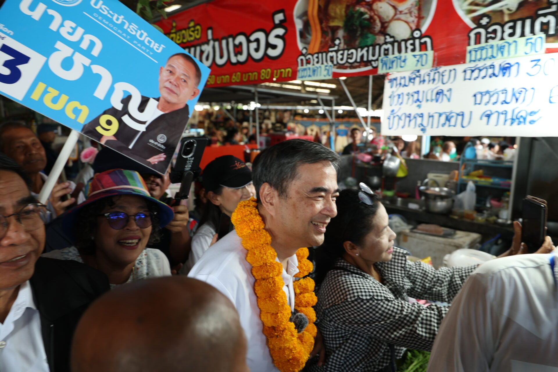 'อภิสิทธิ์' ลุยนครฯ อ้อนขอคะแนน ปชป. เบอร์ 27 ลั่นพร้อมดัน 'คนรุ่นใหม่' เข้าสภารับใช้พี่น้อง ชูต่อยอดนโยบาย 'ยาง-ปาล์ม-ประมง-โครงสร้างพื้นฐาน' หยอดหวานชาวบ้านยังชม 'หล่อเหมือนเดิม'