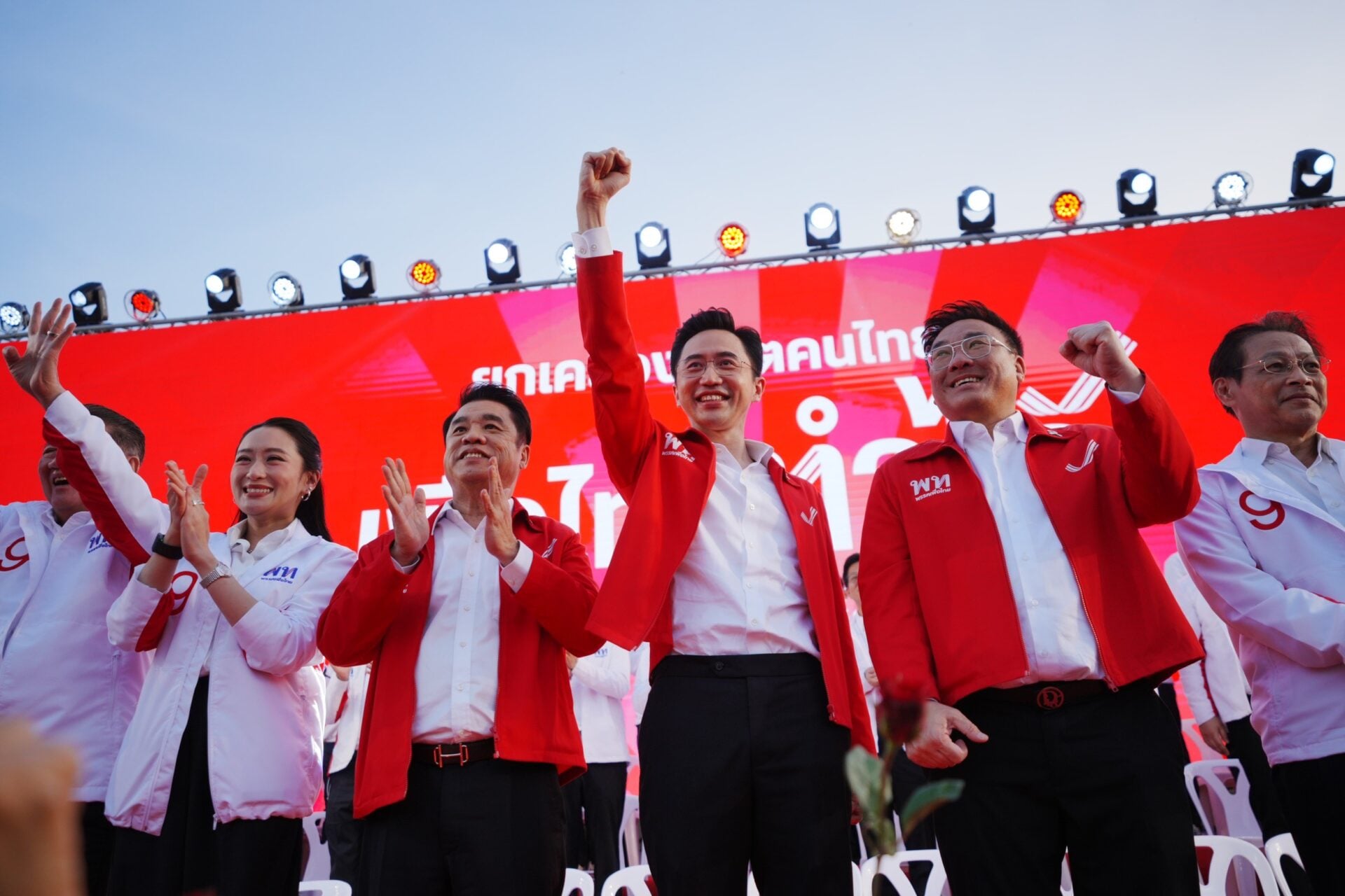 จากนั้นเวลา 17.50 น. เมื่อแคนดิเดตนายกฯทั้ง 3 คน น.ส.แพทองธาร และผู้สมัครสส.พรรคเพื่อไทย ขึ้นเวทีได้รับเสียงเฮจากประชาชนที่มาร่วมรับฟังการปราศรัยอย่างกึกก้องก่อนที่ แคนดิเดตนายกฯพรรคเพื่อไทยทั้ง 3 คนและ น.ส.แพทองธาร จะถ่ายบนเวทีร่วมกับผู้รับฟังการปราศรัย