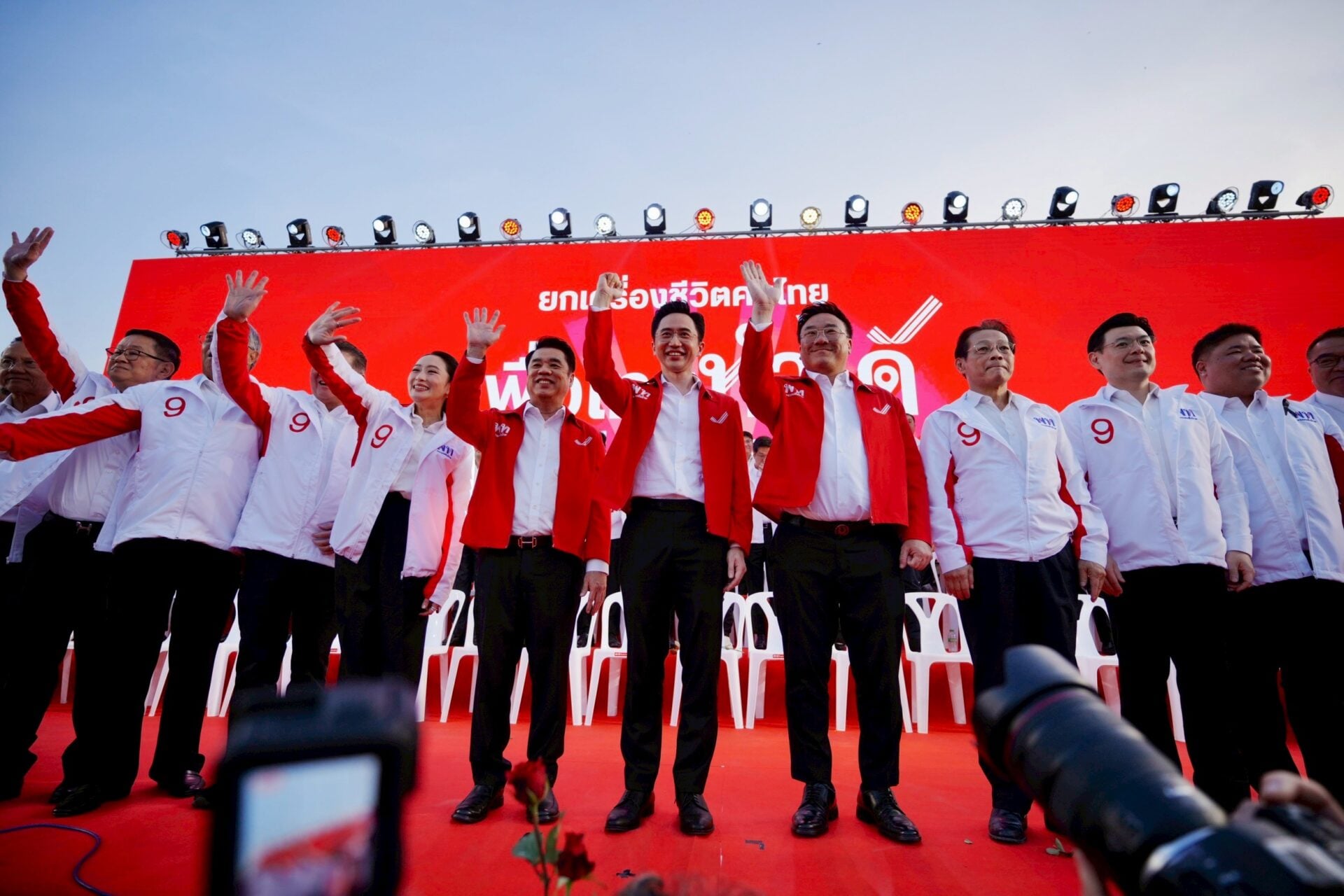 จากนั้นเวลา 17.50 น. เมื่อแคนดิเดตนายกฯทั้ง 3 คน น.ส.แพทองธาร และผู้สมัครสส.พรรคเพื่อไทย ขึ้นเวทีได้รับเสียงเฮจากประชาชนที่มาร่วมรับฟังการปราศรัยอย่างกึกก้องก่อนที่ แคนดิเดตนายกฯพรรคเพื่อไทยทั้ง 3 คนและ น.ส.แพทองธาร จะถ่ายบนเวทีร่วมกับผู้รับฟังการปราศรัย