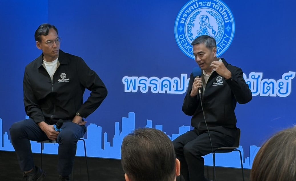 12 ม.ค.2569-ที่อาคารสีลมคอมเพล็กซ์ นายอภิสิทธิ์ เวชชาชีวะ หัวหน้าพรรคประชาธิปัตย์(ปชป.) และแคนดิเดตนายกฯของพรรค ปชป. พร้อมด้วย นายกรณ์ จาติกวณิช รองหัวหน้าพรรค และแคนดิเดตนายกฯ เดินทางเข้าหารือกับกลุ่มนักธุรกิจและนักลงทุน ณ บริษัทหลักทรัพย์ บัวหลวง จำกัด (มหาชน) เพื่อฉายภาพอนาคตเศรษฐกิจไทยผ่านนโยบายที่เน้นความโปร่งใสและตรวจสอบได้