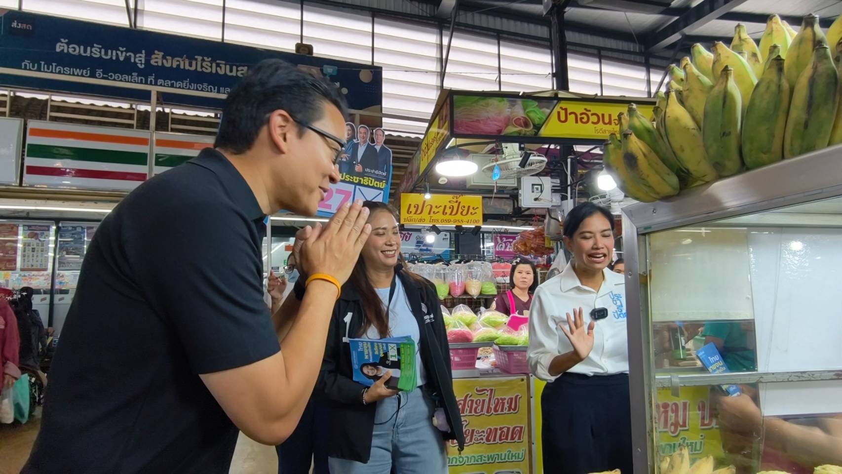 แม่ทัพ กทม. 'สกลธี' ควงคู่ 'เนเน่ รัดเกล้า' สู้ฝุ่นพิษ ลงพื้นที่เขต 9 ตลาดยิ่งเจริญเตือนประชาชนสวมหน้ากากเหตุ 'ค่าฝุ่นส้ม-แดงอันตราย' ห่วงสุขภาพประชาชน พร้อมชูนโยบายประชาธิปัตย์ สู้ฝุ่น PM 2.5 เร่งผลักดันกฎหมาย 3 ฉบับ 'อากาศสะอาด-เศรษฐกิจหมุนเวียน-กฎหมายที่เกี่ยวข้องกับการเปลี่ยนแปลงสภาพภูมิอากาศ' ย้ำ เลือกประชาธิปัตย์บัตรสีชมพูเบอร์ 27