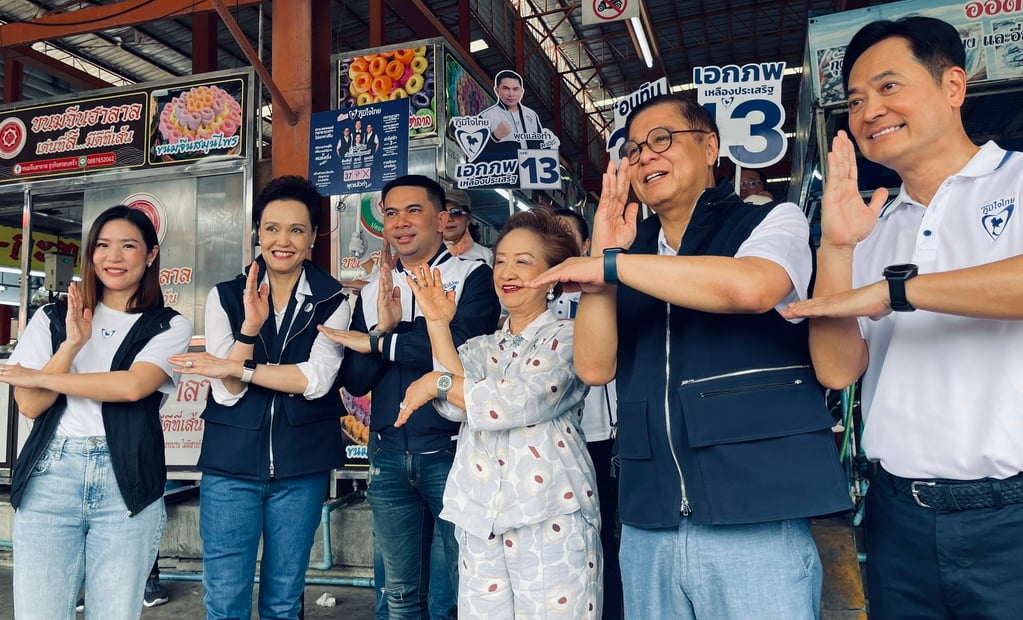 "สีหศักดิ์-ศุภจี" เดินตลาด-นั่งรถเมล์ช่วย "เอก สายไหม" หาเสียง กทม. เจ้าของตลาดมอบสาก ขอช่วยแก้ปัญหาปากท้อง ขณะที่ ดรีมทีมภท. ยันพิสูจน์แล้วทำจริง ขอเวลาเพิ่มจากสี่เดือนเป็นสี่ปี
