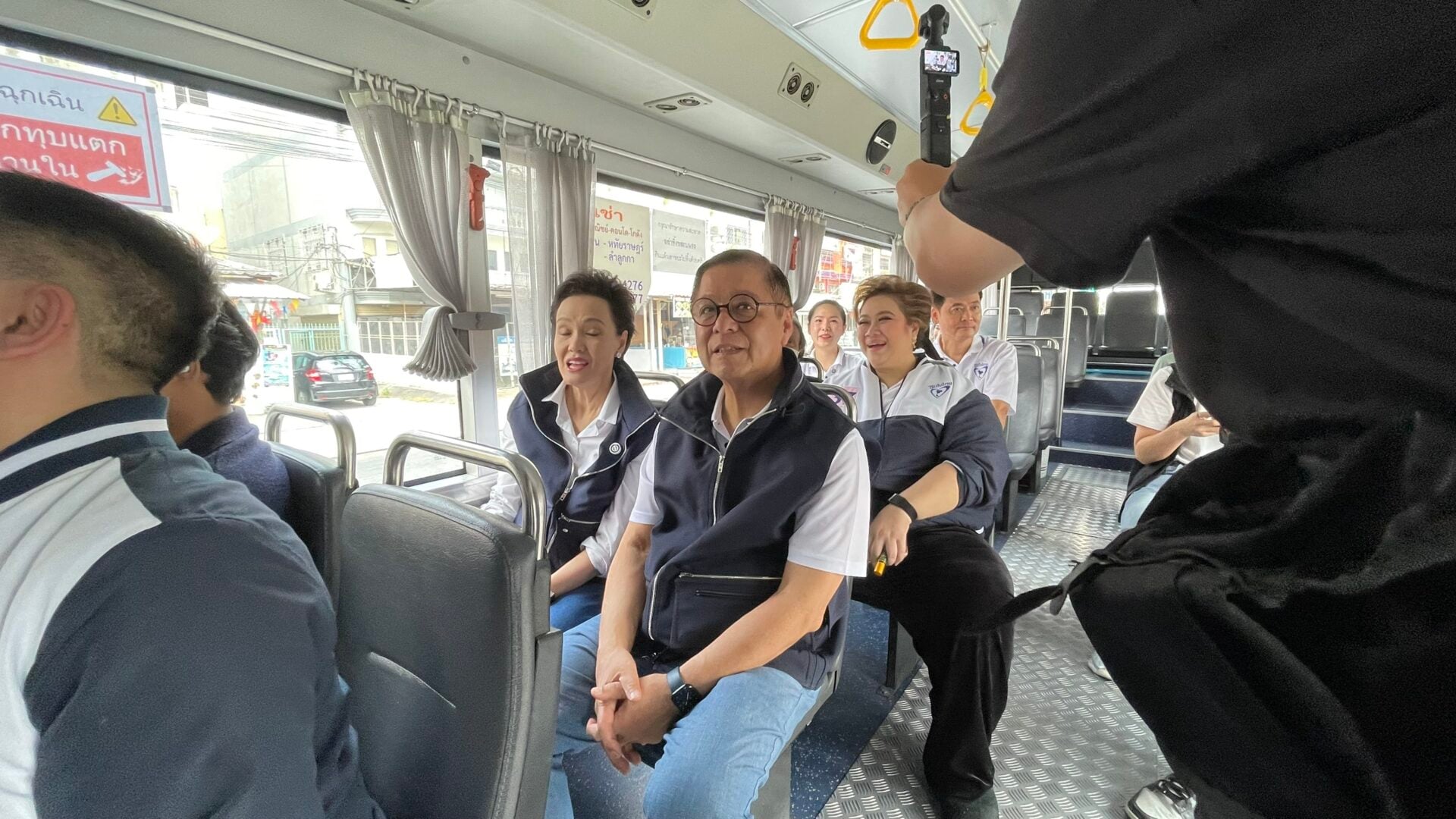 นอกจากนี้ แกนนำหาเสียงขึ้นรถเมล์สาย 1009 จากจุดปราศรัยไปยังที่ทำการผู้สมัคร โดยนายเอกภพ กล่าวถึงปัญหาการเดินทางสาธารณะที่ค่อนข้างลำบาก เนื่องจากมีรถโดยสารสาธารณะเอกชนเพียงสายเดียว ซึ่งได้รับการสะท้อนจากประชาชนที่อยากให้นำรถโดยสาร ขสมก.มาร่วมให้บริการ