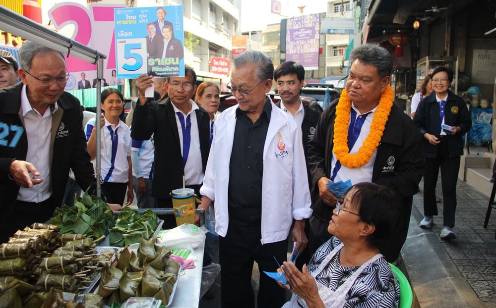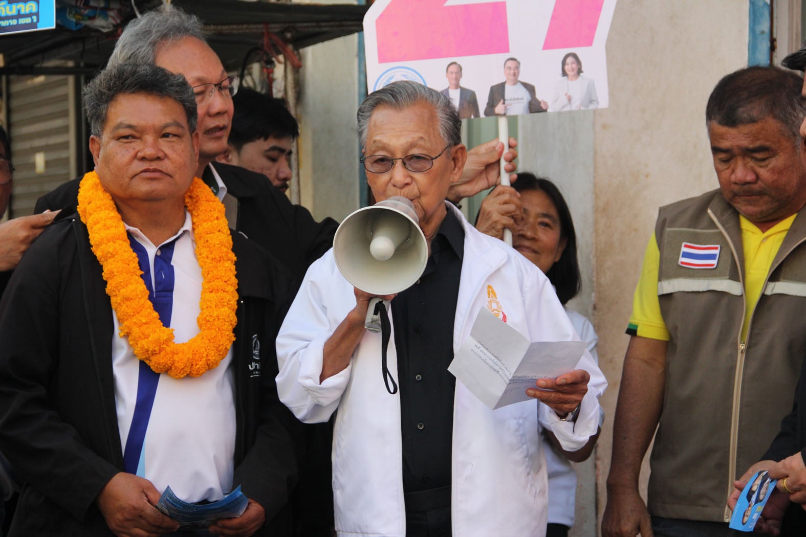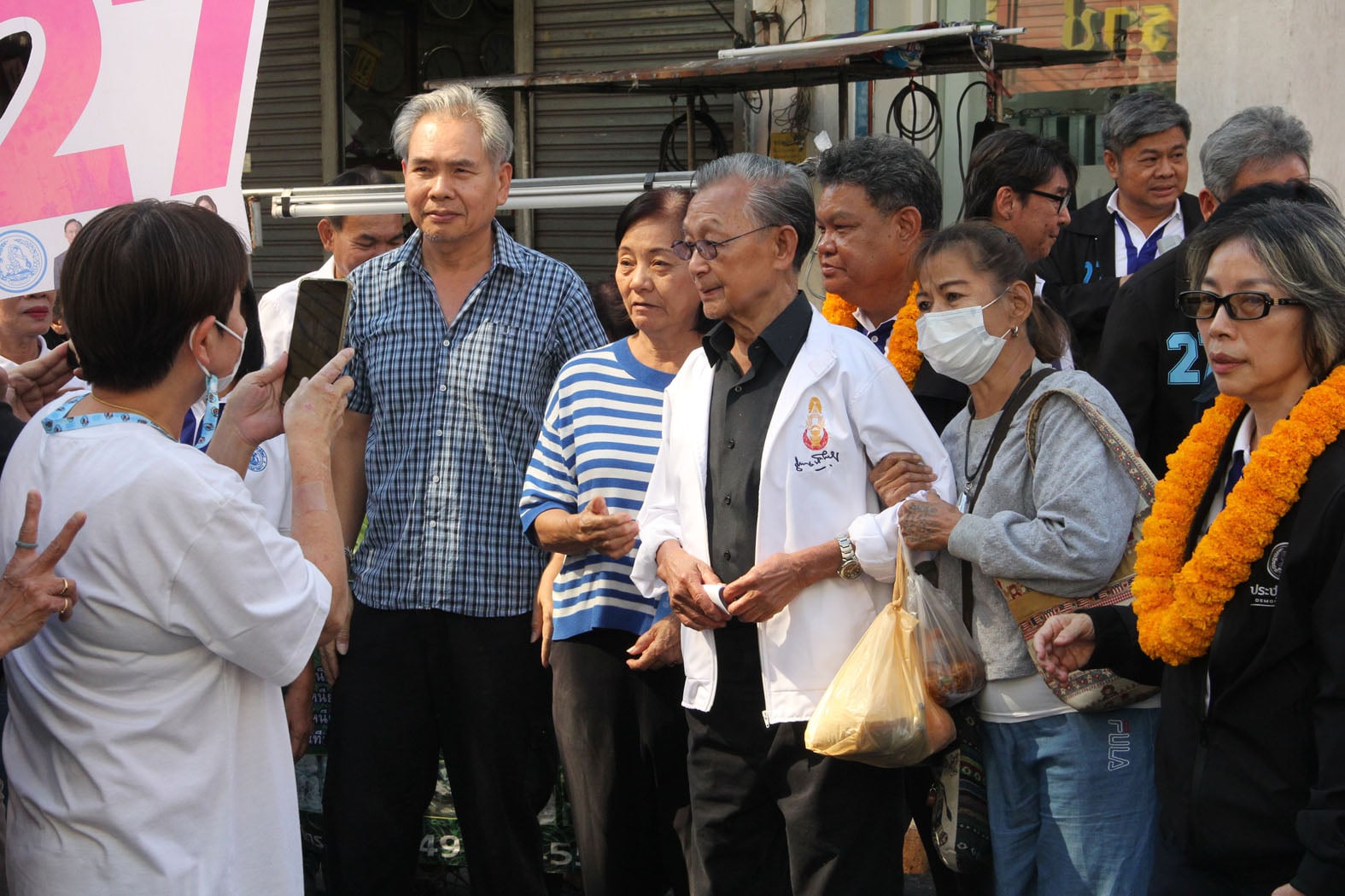"ชวน หลีกภัย" ลงพื้นที่ตลาดปากน้ำ ช่วยผู้สมัคร สส.ประชาธิปัตย์ หาเสียง ชูสานต่อเบี้ยผู้สูงอายุ 1,000 บาท