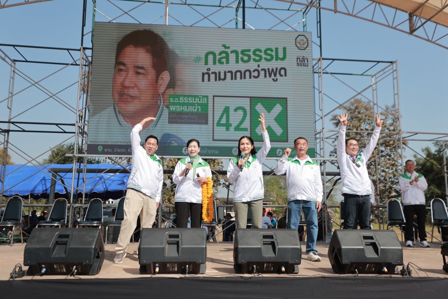 25 ม.ค.2569 – พรรคกล้าธรรม จัดเวทีปราศรัยหาเสียงเลือกตั้งที่ โรงเรียนพานพิทยาคม ตำบลเมืองพาน อำเภอพาน จังหวัดเชียงราย บรรยากาศเป็นไปอย่างคึกคักตั้งแต่ช่วงเช้า มีประชาชนจากหลายพื้นที่ในอำเภอพานและใกล้เคียงเดินทางมาร่วมรับฟังแนวทางการทำงานของพรรค โดยเวทีครั้งนี้มีแกนนำสำคัญของพรรคขึ้นปราศรัยช่วยผู้สมัคร สสเชียงรายของพรรค ประกอบด้วย ร.อ.ธรรมนัส พรหมเผ่า ประธานที่ปรึกษาพรรคกล้าธรรม และแคนดิเดตนายกรัฐมนตรี นางนฤมล ภิญโญสินวัฒน์ หัวหน้าพรรคกล้าธรรม และ นางปวีณา หงสกุล ประธานที่ปรึกษาพรรคกล้าธรรมฝ่ายสังคม