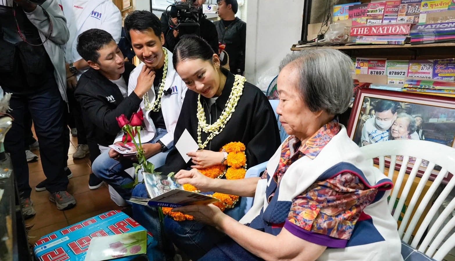 ทั้งนี้ น.ส.แพทองธารจะแวะทักทายนางอรุณศรี พวงพฤกษา เจ้าของร้าน มีการสนทนากันอย่างสนิทสนมเป็นกันเองระหว่างนี้ป้าอรุณศรีได้มอบพวงมาลัยให้กับแพทองธารและ นพ.ธีรพัฒน์ ผู้สมัครเขต 1 เพื่อเป็นกำลังใจ พร้อมทั้งโชว์อัลบั้มภาพที่ถ่ายกับนายทักษิณมาให้ดูและมอบการ์ดแสดงความห่วงใยไปถึง ทักษิณ ชินวัตร ที่เขียนด้วยลายมือว่า “รัก-คิดถึง เป็นห่วงโทนี่เสมอ พี่อรุณศรี 25 มกราคม 2569” พร้อมฝากให้นางสาวแพทองธารนำไปมอบให้ด้วย ทั้งนี้ก่อนออกจากร้านยังได้มอบส้มเป็นที่ระลึกให้กับทั้งสองคนด้วย