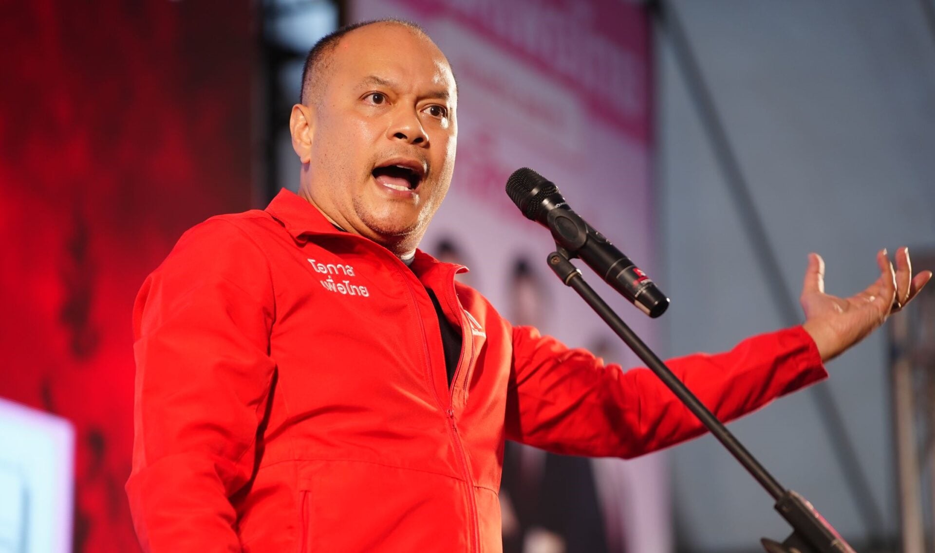 ก่อนหันไปบอกนายณัฐพลว่า ”ไปนั่งได้ รักษาเก้าอี้ไว้ หากลุกออกไป เดี๋ยวใครมาแย่งเก้าอี้ เสียหายแย่“ ก่อนจะปราศรัยต่อว่า หลายคนที่อยู่ในแวดวงการเมืองบอกว่าวันที่พรรคเพื่อไทยมาเขตนี้ คงจะมีการถลกหนังกัน คงจะมีการจัดการรุมกระหน่ำทำร้ายทำให้เสียหาย แต่ไม่มีหรอก นั่นไม่ใช่แนวทางของพรรคเพื่อไทย เราเดินหน้านโยบาย เราเดินหน้าด้วยการแก้ปัญหาชาติบ้านเมือง และจะขอเล่าให้ฟังว่าตนอยู่ในเหตุการณ์คนที่เป็นสส.เขตนี้เขายืนยันตลอดว่า เขาจะไม่ไปไหน