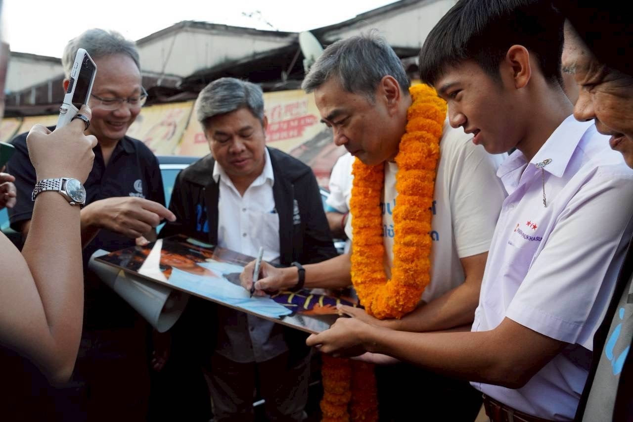 'อภิสิทธิ์' เดินขอคะแนนตลาดเดอะซัน! มั่นใจกวาดที่นั่งคืนสนาม กทม. ชูธง 'คุมเกม' รัฐบาลสีขาว สกัดกั้นวงจรทุจริต-ครอบงำ