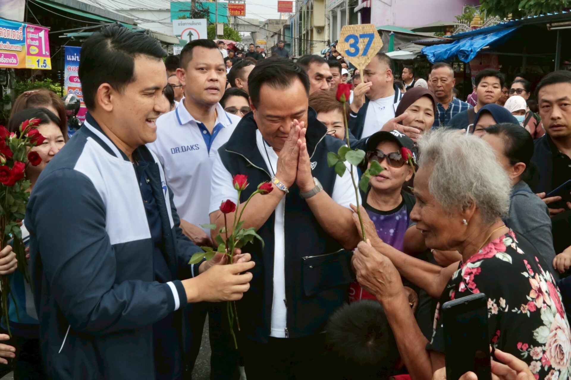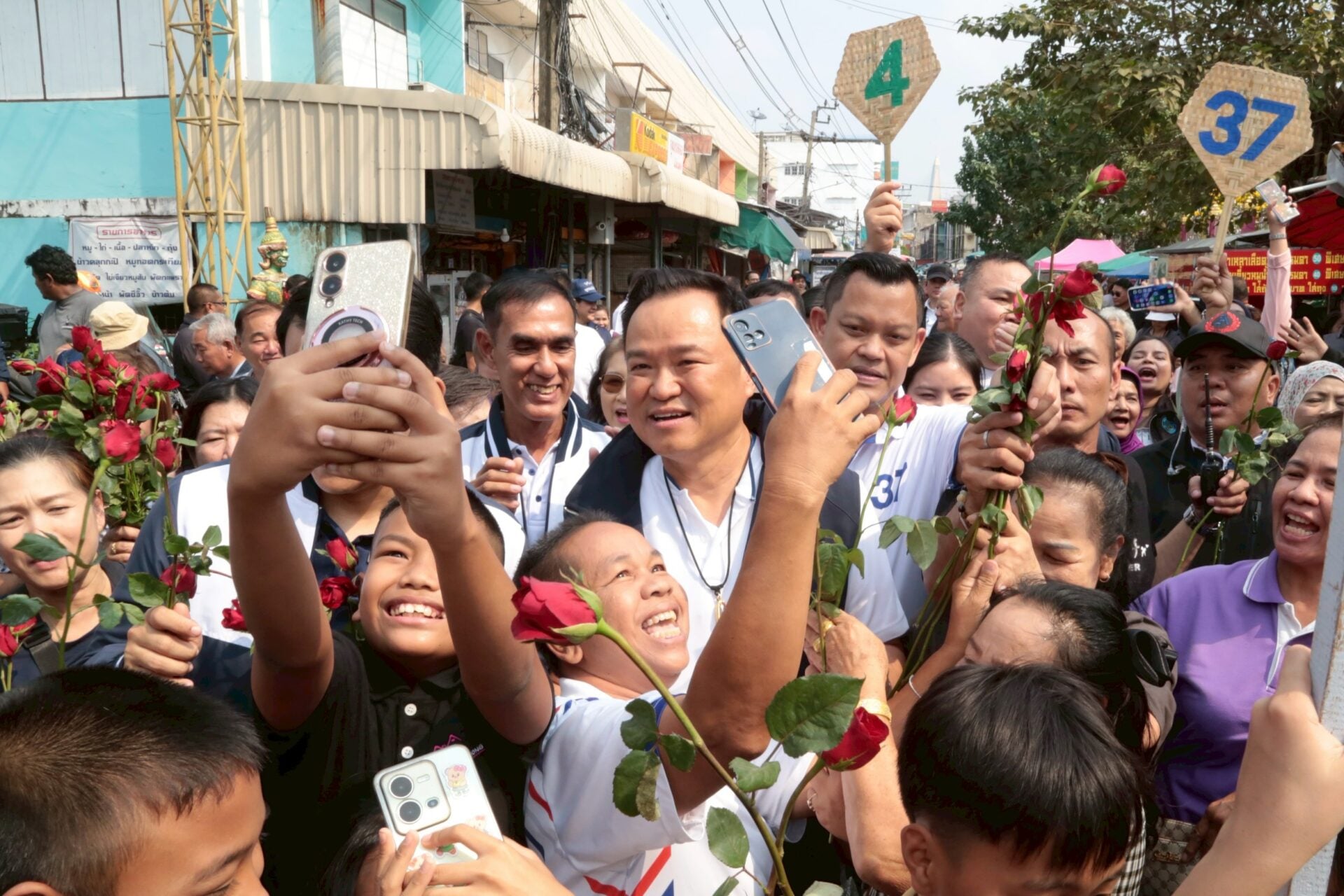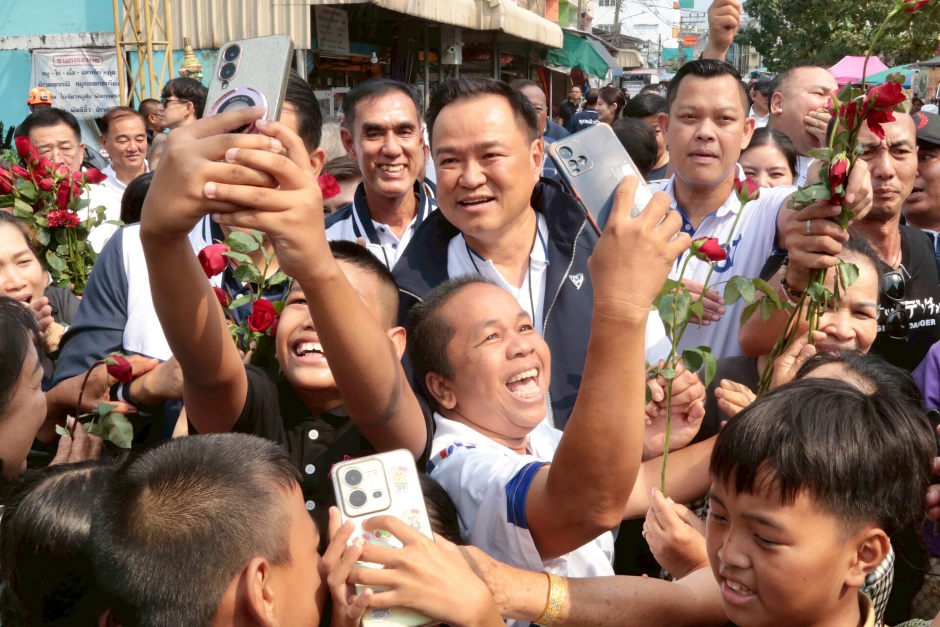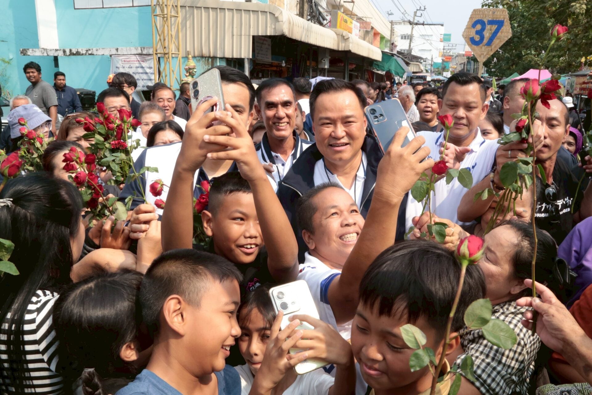 'อนุทิน' เดินหาเสียงตลาดบางน้ำผึ้ง แฟนคลับรุมถ่ายรูป บอกรักนายกฯ รอคนละครึ่งพลัส