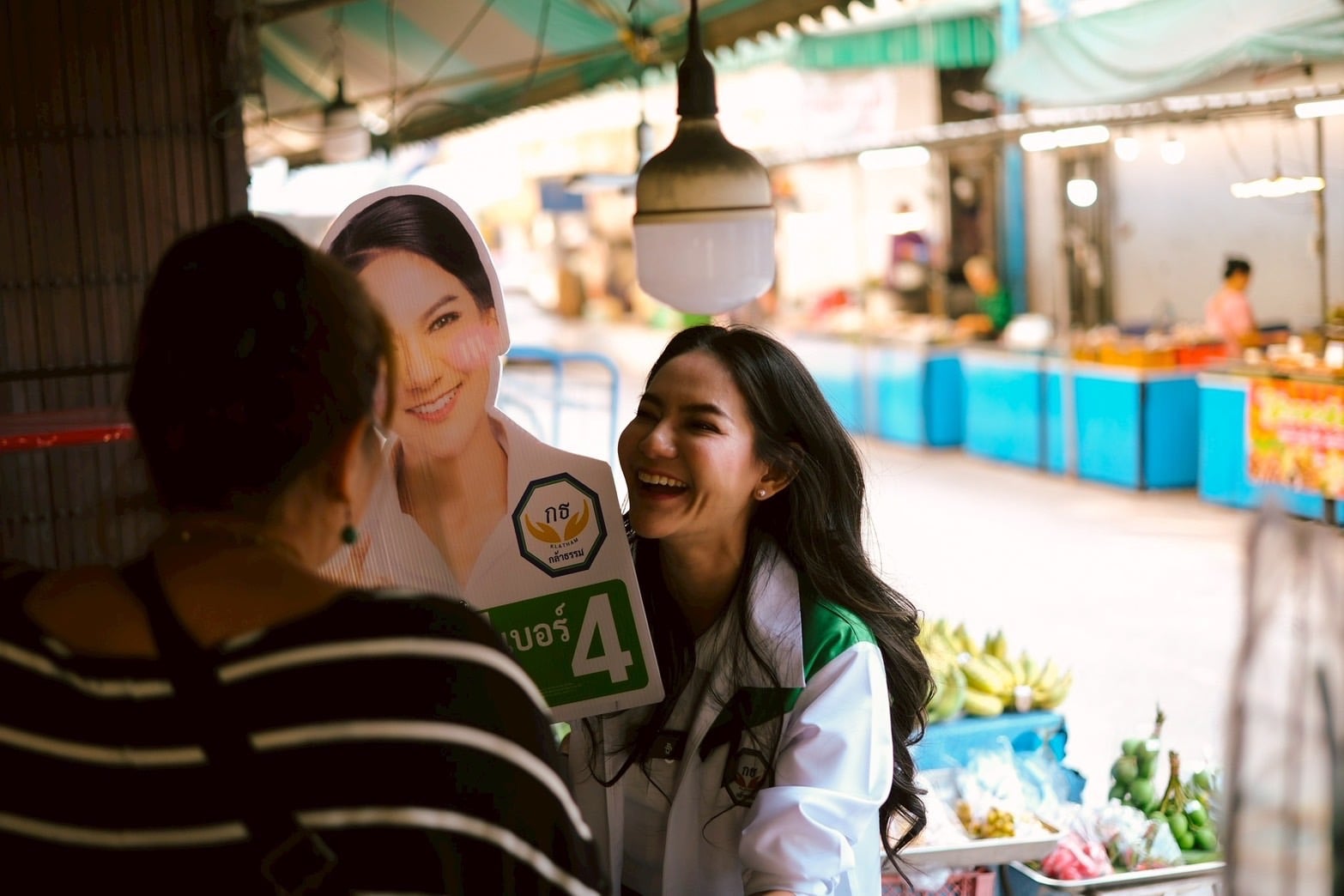 6 กุมภาพันธ์ 2569 - บรรยากาศการหาเสียงเลือกตั้งในเขตพระโขนง-บางนาเริ่มคึกคักในช่วงโค้งสุดท้ายก่อนวันเลือกตั้ง 8 กุมภาพันธ์ 2569 โดย น.ส.ณัฐธนินทร์ หรือ “โย” เลิศเตชะสกุล ผู้สมัคร สส. เขตพระโขนง–บางนา เบอร์ 4 พรรคกล้าธรรม หมายเลขพรรค 42 ลงพื้นที่พบประชาชน ขอคะแนนเสียงจากชุมชนและย่านการค้าในพื้นที่อย่างต่อเนื่อง