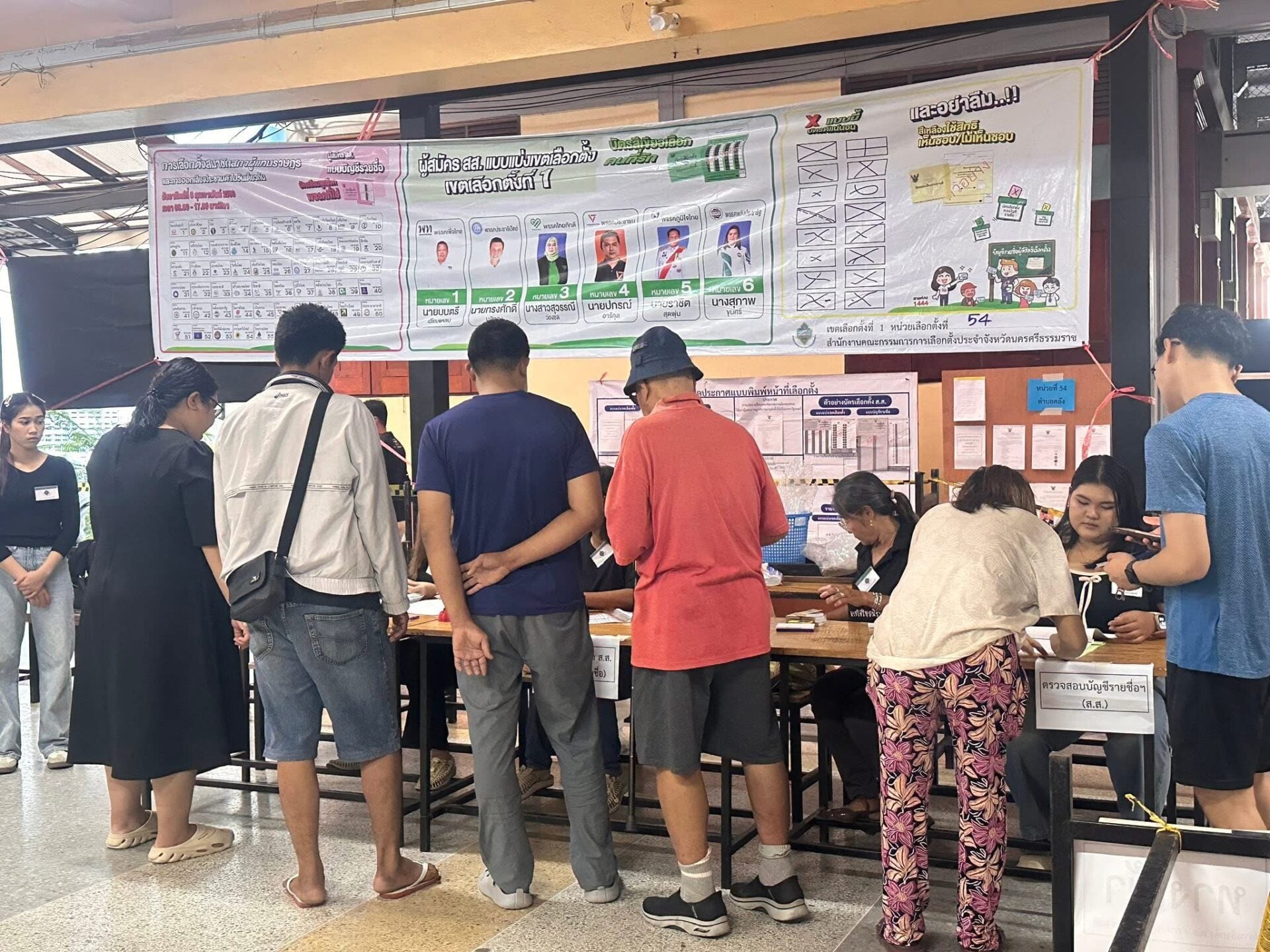 8 ก.พ. 2569 – บรรยากาศการเลือกตั้งสมาชิกสภาผู้แทนราษฎรเป็นการเลือกตั้งทั่วไป พ.ศ.2569 และการออกเสียงประชามติ ของจังหวัดนครศรีธรรมราช เป็นไปอย่างคึกคักตั้งแต่ช่วงเช้า ประชาชนทยอยเดินทางมาตรวจสอบรายชื่อและใช้สิทธิเลือกตั้งอย่างต่อเนื่อง ตั้งแต่ก่อนเวลา 08.00 น. โดยภาพรวมการออกมาใช้สิทธิเป็นไปด้วยความเรียบร้อย