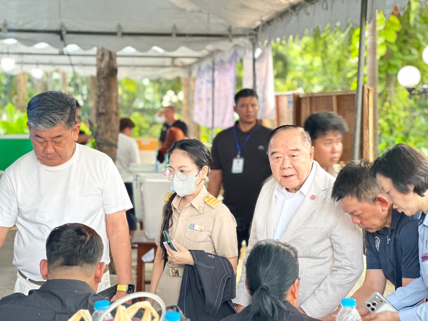 8 ก.พ. 2569 – เมื่อเวลา 08.01 น. พล.อ.ประวิตร วงษ์สุวรรณ ประธานที่ปรึกษาพรรคพลังประชารัฐ พร้อมด้วย พล.ร.อ.ศิษฐวัชร วงษ์สุวรรณ อดีตสมาชิกวุฒิสภา น้องชาย ได้เดินเท้าจากบ้านในซอยลาดพร้าว 71 มายังหน่วยเลือกตั้งที่ 12 แขวงสะพานสอง ซอยลาดพร้าว 71 เขตวังทองหลาง ซึ่งอยู่ใกล้กัน เพื่อมาใชัสิทธิเลือกตั้ง สส. และออกเสียงประชามติ ซึ่งมาเป็นคิวแรกๆ โดย พล.อ.ประวิตร เป็นผู้มีสิทธิเลือกตั้งในลำดับที่ 462 ทั้งนี้ พล.อ.ประวิตร มีสีหน้ายิ้มแย้มแจ่มใส ขณะเดียวกัน ระหว่างรอคิว ยังมีประชาชนที่ออกมาใช้สิทธิเข้ามาทักทายเป็นระยะ ทั้งนี้ ภายลงคะแนนเลือกตั้ง สส.และออกเสียงประชามติเสร็จสิ้น ได้เดินทางกลับในเวลา 08.31 น.