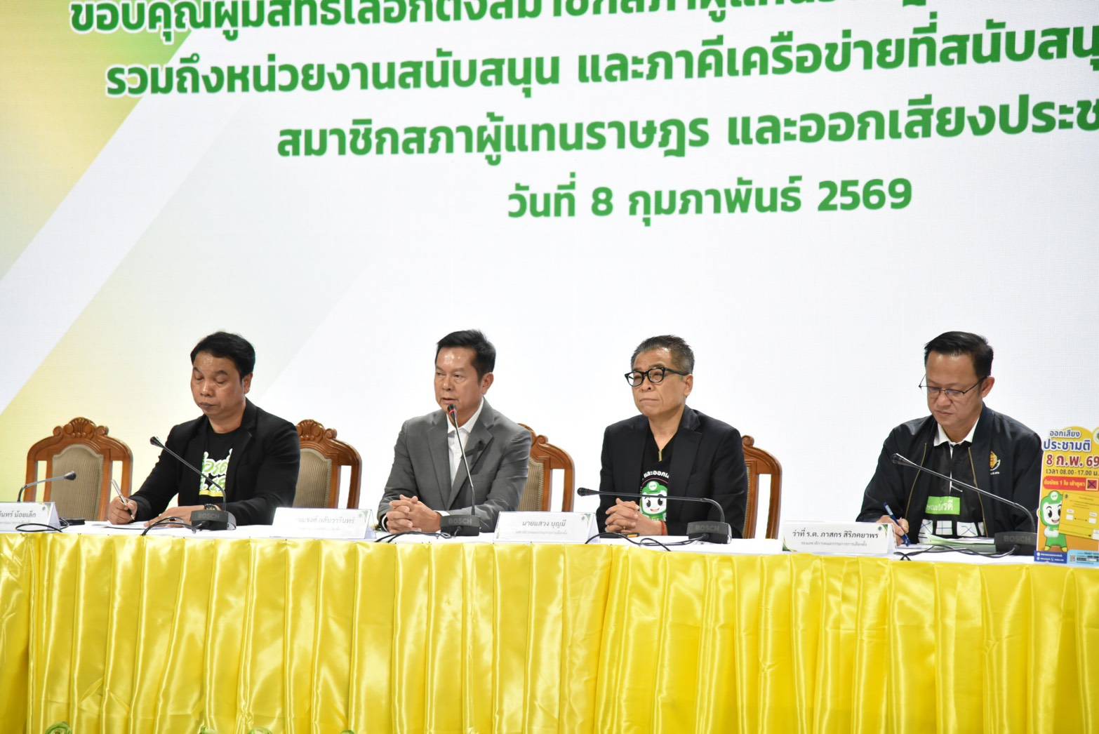 8 ก.พ.2569- เวลา 18.00น.ที่สำนักงานคณะกรรมการการเลือกตั้ง(กกต.) นำโดยนายณรงค์ กลั่นวาริน ประธานกกต.พร้อมด้วยคณะกรรมการกกต. เลขาธิการกกต. และรองเลขาธิการคณะกรรมการการเลือกตั้ง ร่วมกันแถลงสรุป ภาพรวมหลังปิดหีบบัตรเลือกตั้งในเวลา 17.00 น.