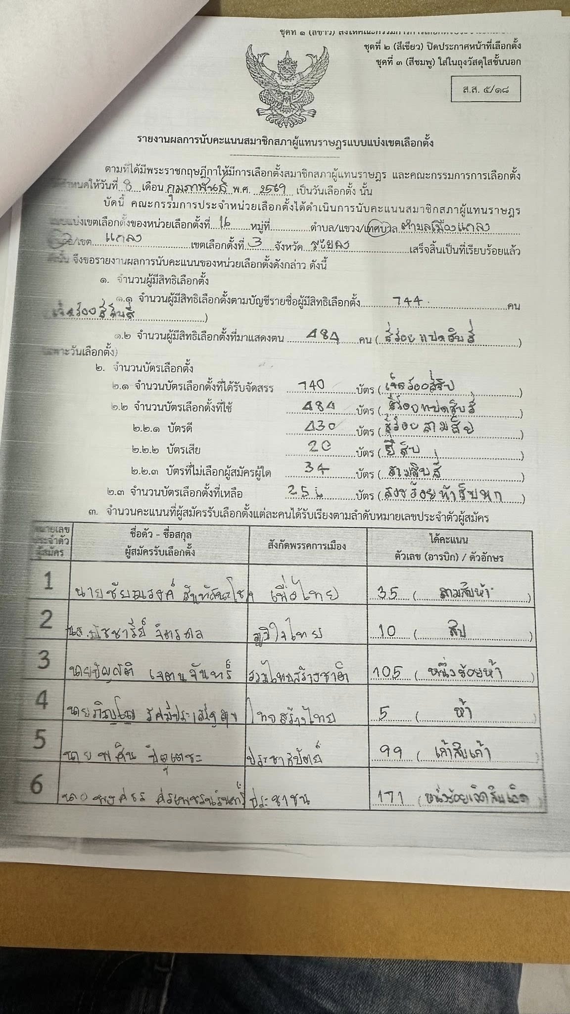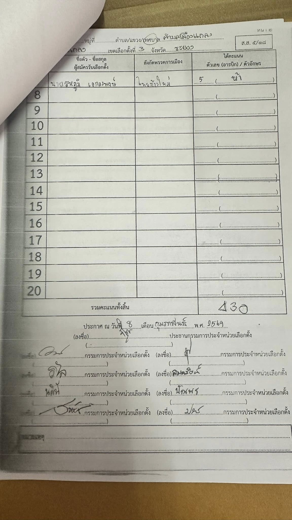 ไม่ตรงกับคะแนนที่ระบุในใบรายงานผลนับคะแนน สส 5/18 ที่เราได้มาจาก กกต