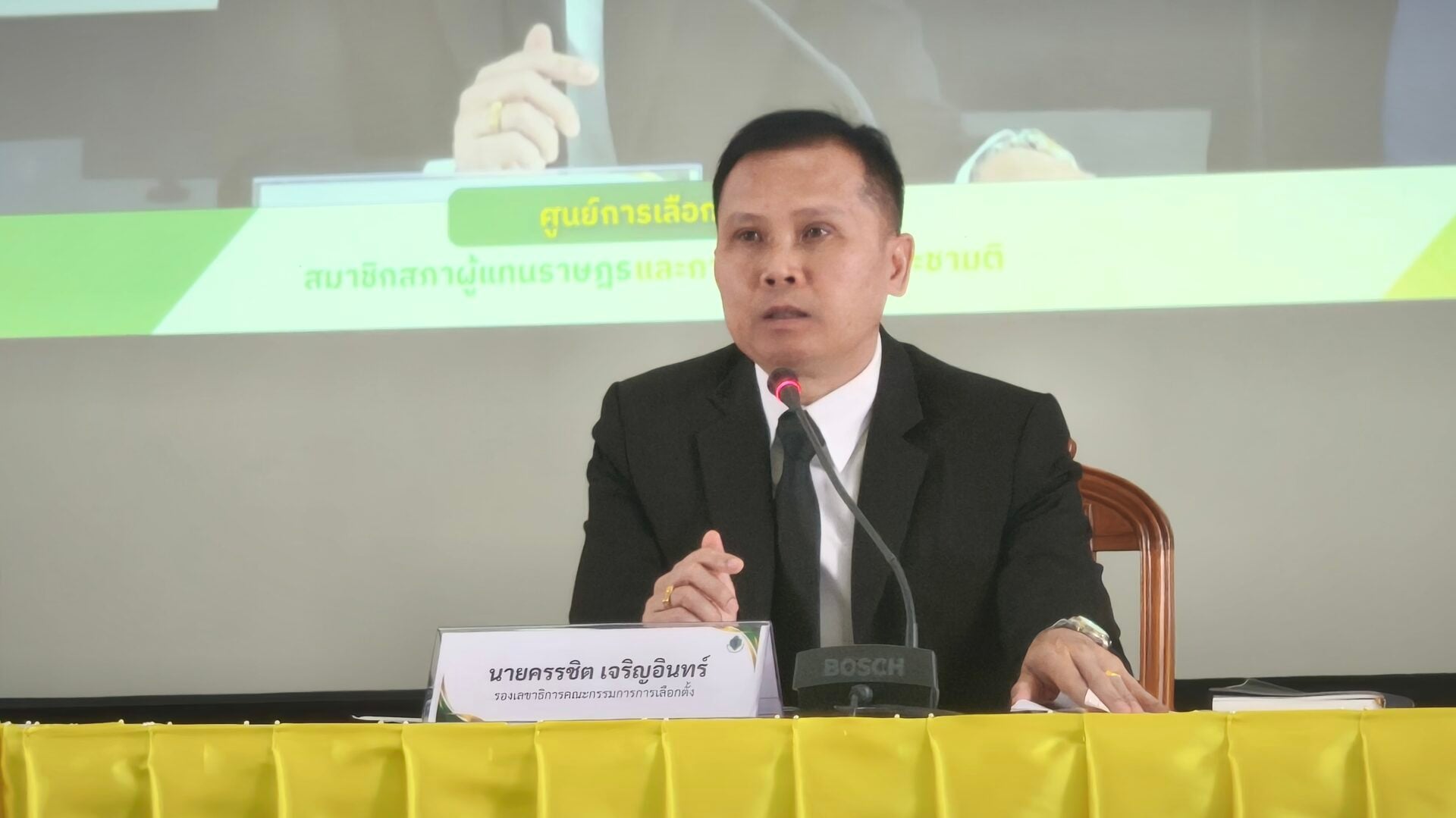 4 มีนาคม 2569 - ว่าที่ ร.ต.ภาสกร สิริภคยาพร รองเลขาธิการคณะกรรมการการเลือกตั้ง และโฆษกสำนักงานคณะกรรมการการเลือกตั้ง และนายครรชิต เจริญอินทร์ รองเลขาธิการคณะกรรมการการเลือกตั้ง และรองโฆษกสำนักงานคณะกรรมการการเลือกตั้ง แถลงข่าว "การเลือกตั้ง สส. และการออกเสียงประชามติ"