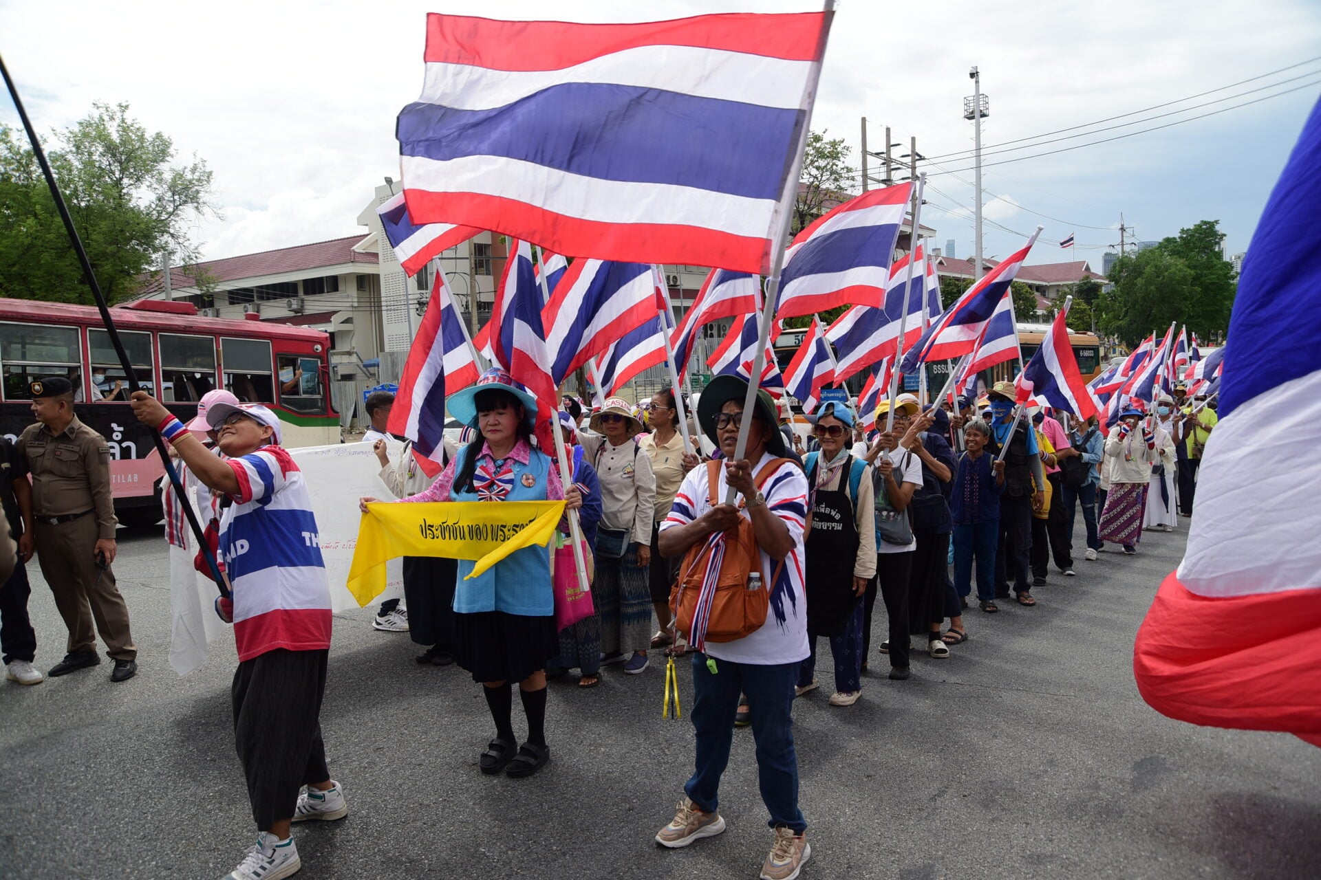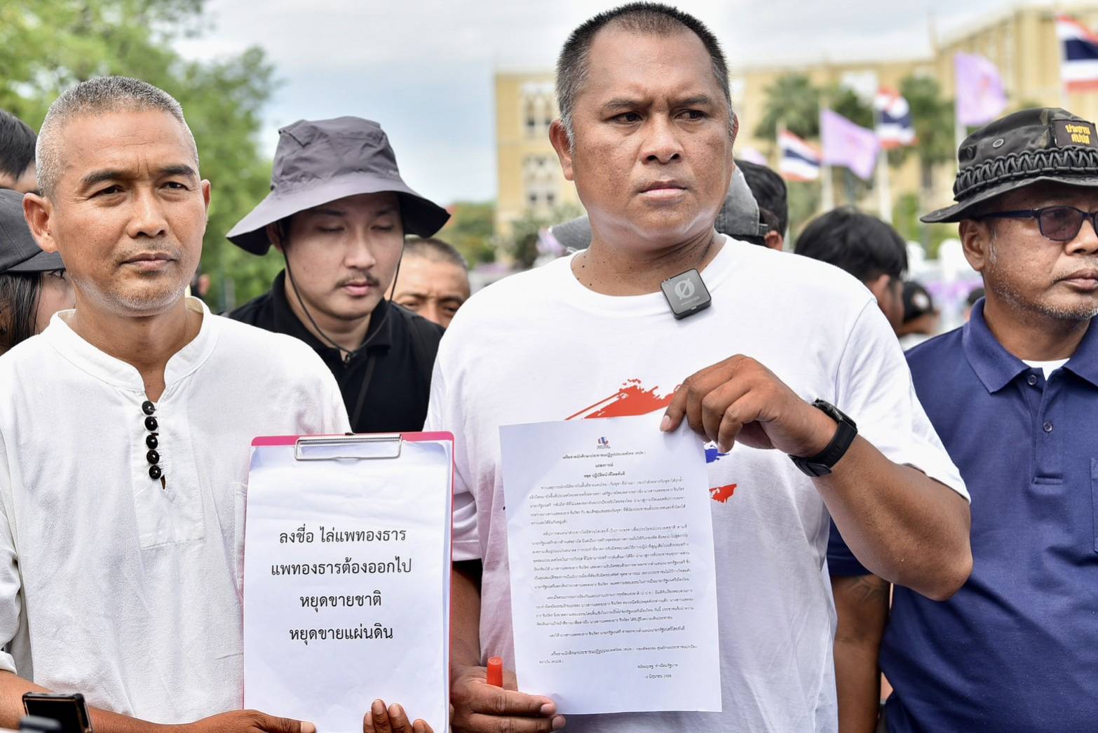 24 มิ.ย. 2568- เมื่อเวลา 10.00 น. แกนนำเครือข่ายนักศึกษาประชาชนปฏิรูปประเทศไทย หรือ คปท. นำโดย นายพิชิต ไชยมงคล พร้อมกลุ่มผู้ชุมนุม จัดกิจกรรมแสดงออก เชิงสัญลักษณ์เดินขบวน นำป้ายผ้าข้อความวิจารณ์ การทำงานของนางสาวแพทองธาร ชินวัตร นายกรัฐมนตรี มาล้อมไว้บริเวณริมถนนรอบทำเนียบรัฐบาลพร้อมกับอ่านแถลงการณ์ เพื่อแสดงจุดยืนของกลุ่มผู้ชุมนุม