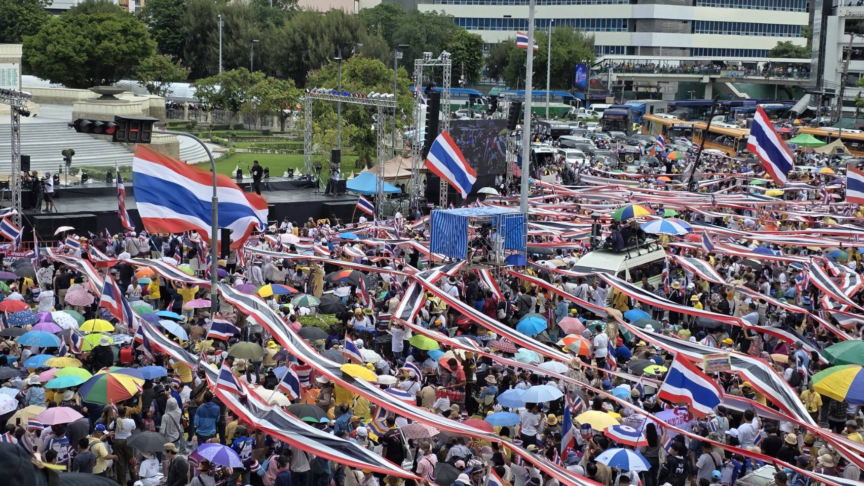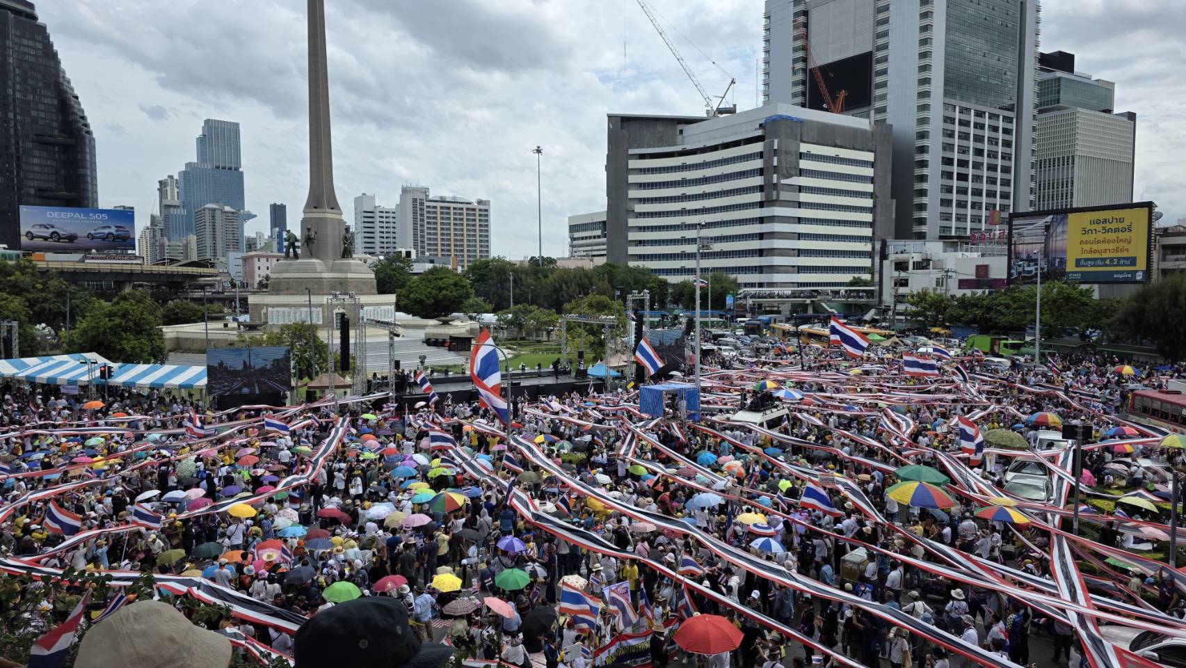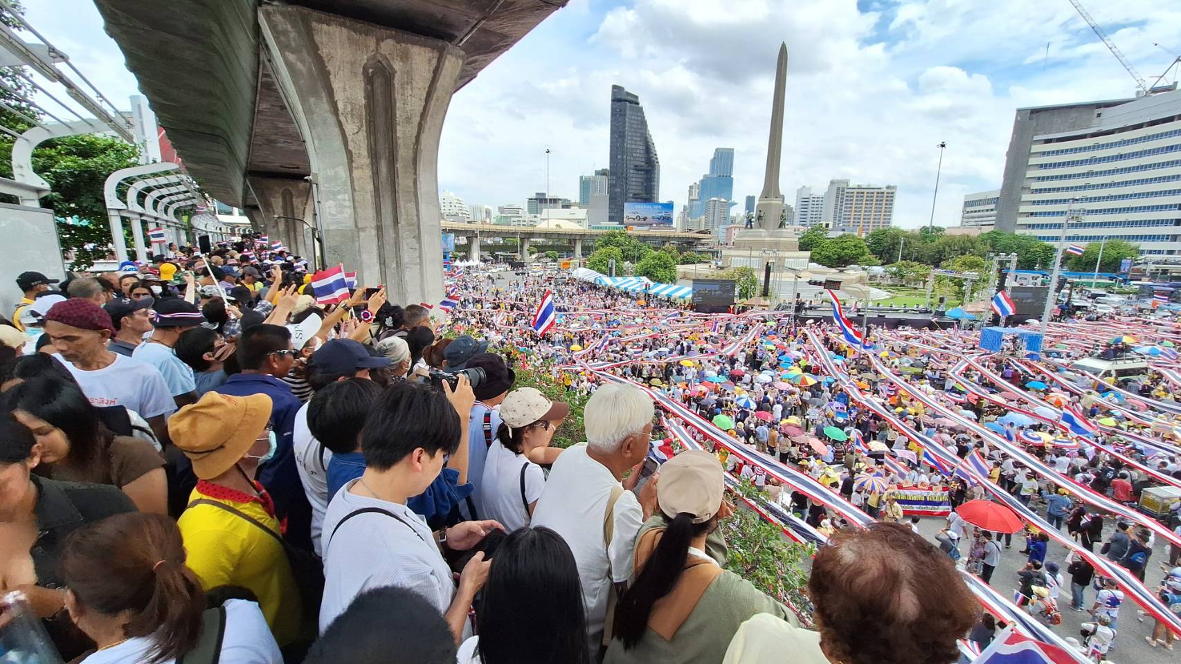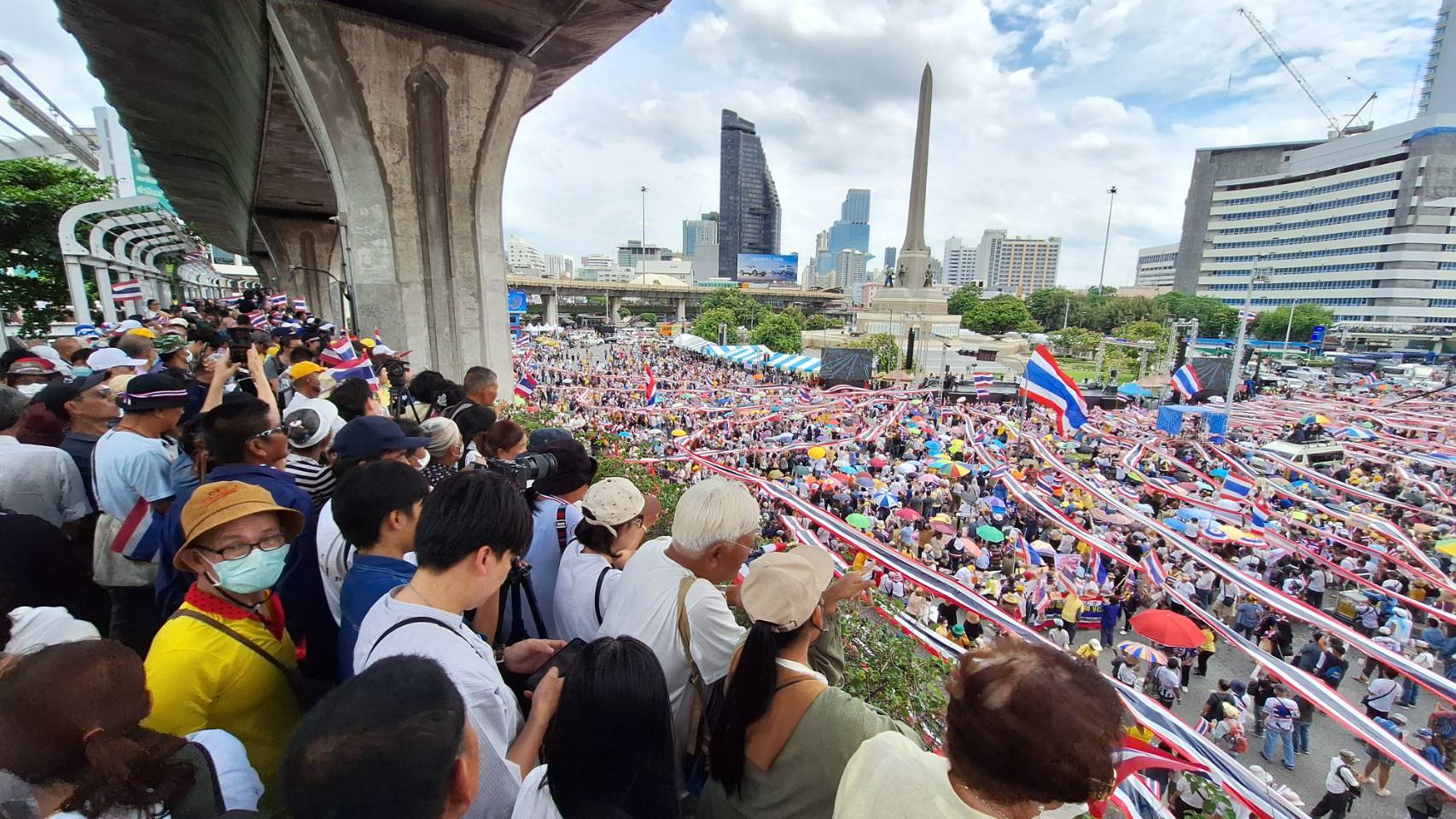 ธงชาติโบกสะบัด! ม็อบรวมพลังแผ่นดินจัดกิจกรรมเชิงสัญลักษณ์ ชุมนุมใหญ่อนุสาวรีย์ชัยฯ ช่วงบ่ายยิ่งคึกคัก มวลชนสมทบเข้าพื้นที่อย่างต่อเนื่อง เดินทางมากันแน่นรถไฟฟ้าบีทีเอส