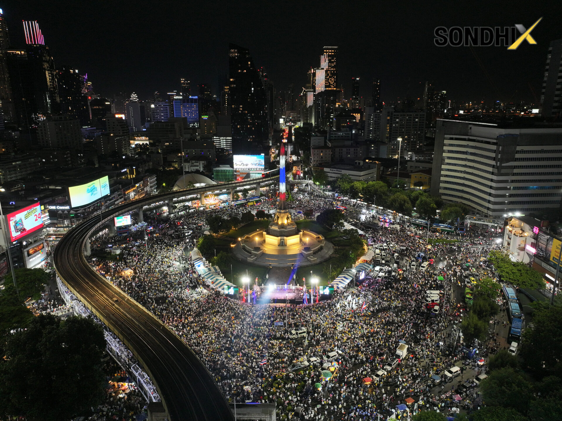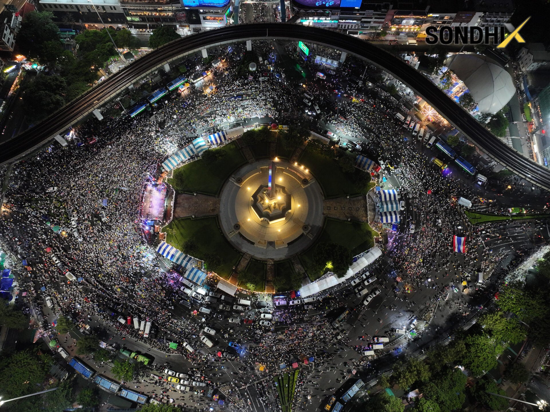 28 มิถุนายน 2568 - เวลา 20.10 น. เพจเฟซบุ๊ก คุยทุกเรื่องกับสนธิ โพสต์ภาพมุมสูงการชุมนุมของคณะรวมพลังแผ่นดินปกป้องอธิปไตย เรียกร้องให้ น.ส.แพทองธาร ชินวัตร นายกฯลาออก พร้อมข้อความระบุว่า พลังของมวลชนคนรักชาติ ณ อนุสาวรีย์ชัยสมรภูมิ