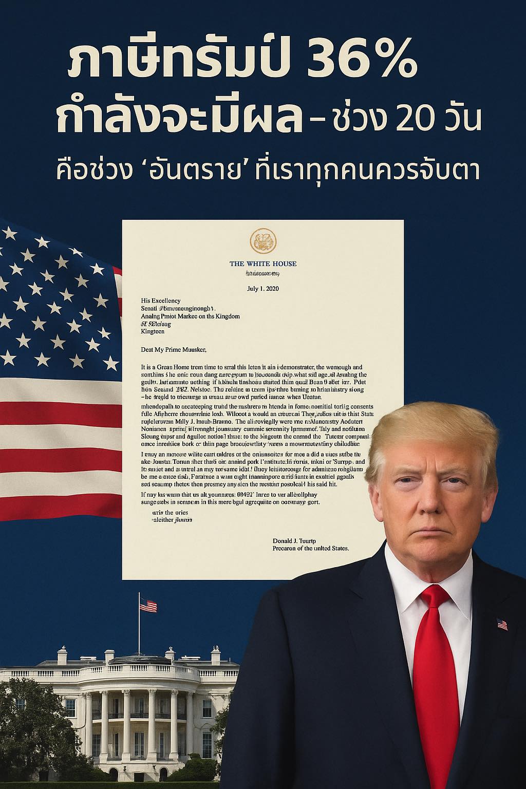 13 ก.ค.2568 – ดร.สุริยะใส กตะศิลา คณบดีวิทยาลัยผู้นำและนวัตกรรมสังคม มหาวิทยาลัยรังสิต โพสต์เฟซบุ๊ก ว่า จับตา! ภาษีทรัมป์ 36% กำลังจะมีผล – ช่วง 20 วันนี้ คือช่วง “อันตราย” ที่เราทุกคนควรจับตาให้มากที่สุด