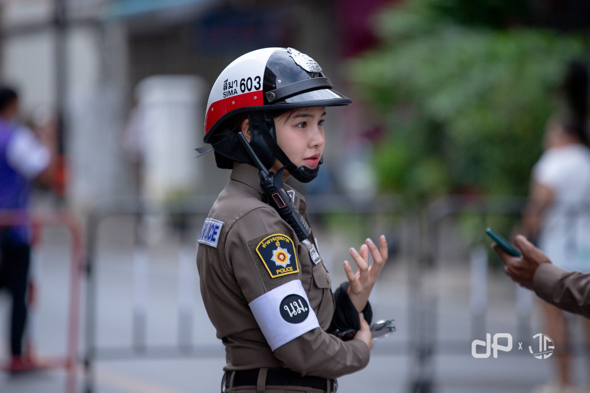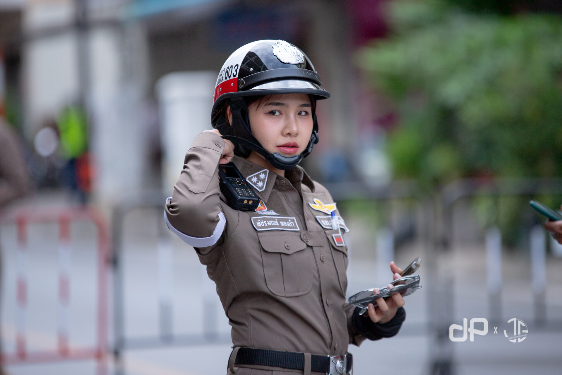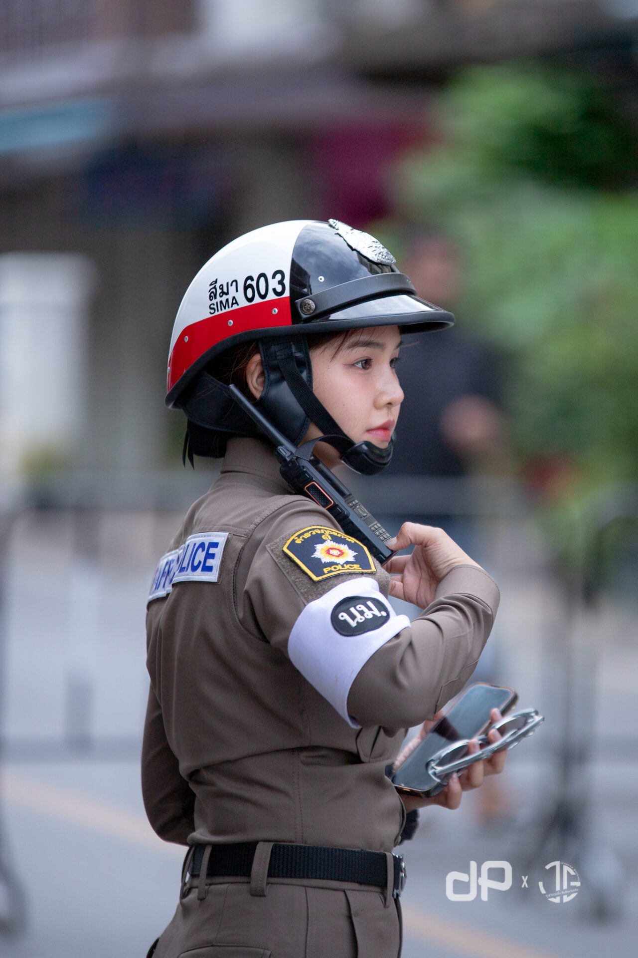 ตำรวจจราจรหญิงรายนี้ชื่อ ร.ต.อ.หญิง พัชรมณฑ์ ทองนำ นรต.73รองสวป.หัวหน้าจราจรสภ.โนนไทย จว.นครราชสีมา