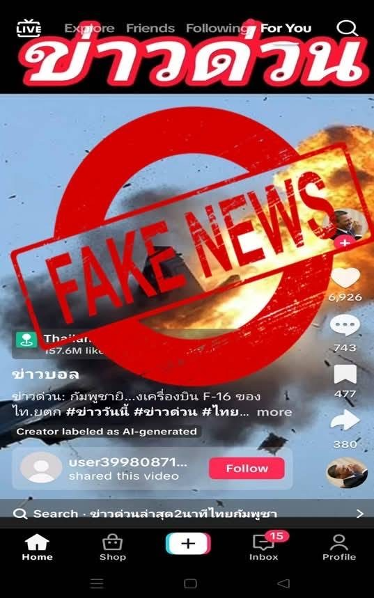 ทอ.แจง เฟกนิวส์กัมพูชา ยิงเครื่องบิน F-16 ตก ขออย่าหลงเชื่อฝากประชาชนติดตามข่าวจากแหล่งข่าวที่น่าเชื่อถือเท่านั้น