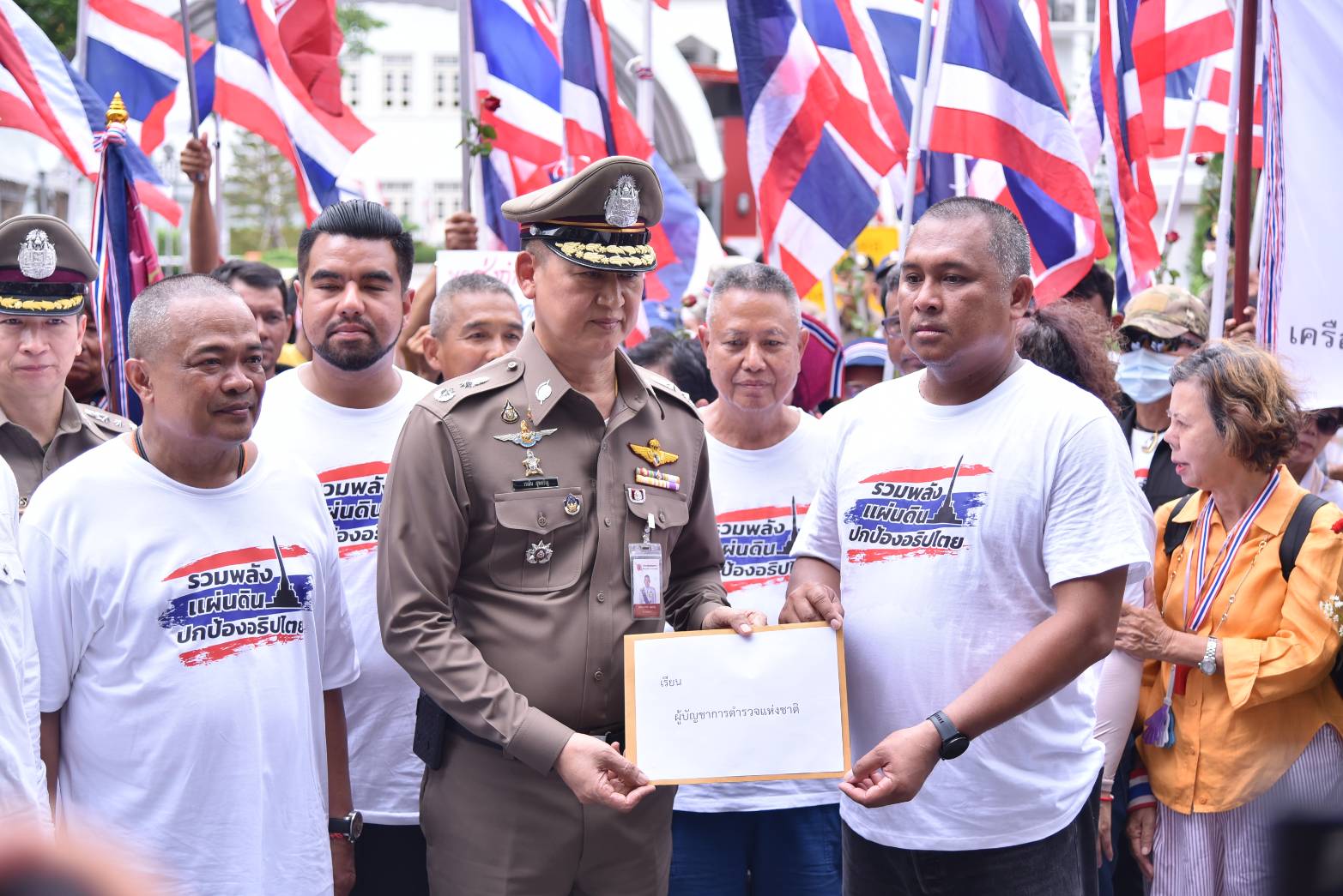 คณะรวมพลังแผ่นดิน ให้กำลังใจสำนักงานตำรวจแห่งชาติร่วมปกป้องอธิปไตยไทย ซัดรัฐบาลเฮงซวยเจรจาหยุดยิงทำให้ไทยเสียปราสาทตาควาย