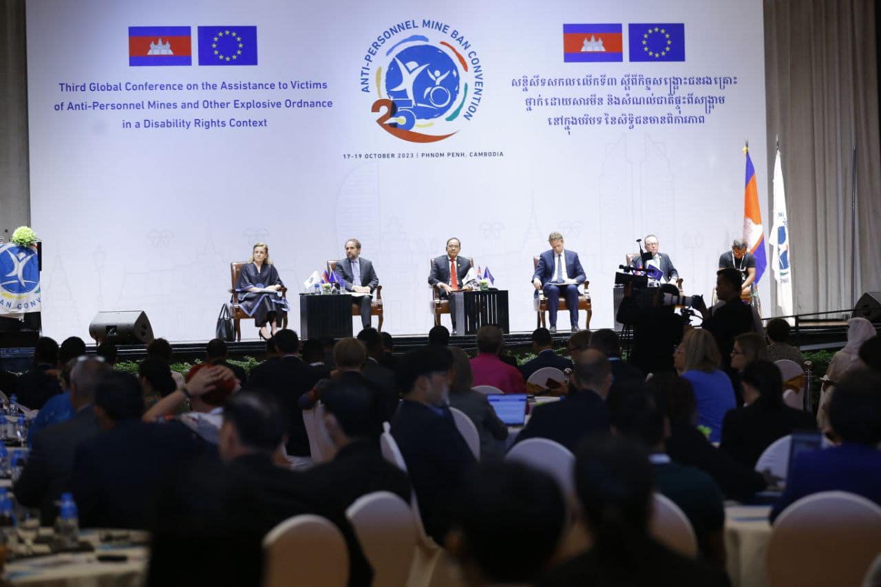 โดยระบุว่า ในปีพ.ศ. 2566 รัฐบาลกัมพูชาได้เคยประกาศตั้งเป้าการระดมยอดบริจาคจากนานาประเทศ เพื่อการกำจัดการใช้และทำลายทุ่นระเบิดทั้งหมดในกัมพูชา ภายในปี พ.ศ. 2568