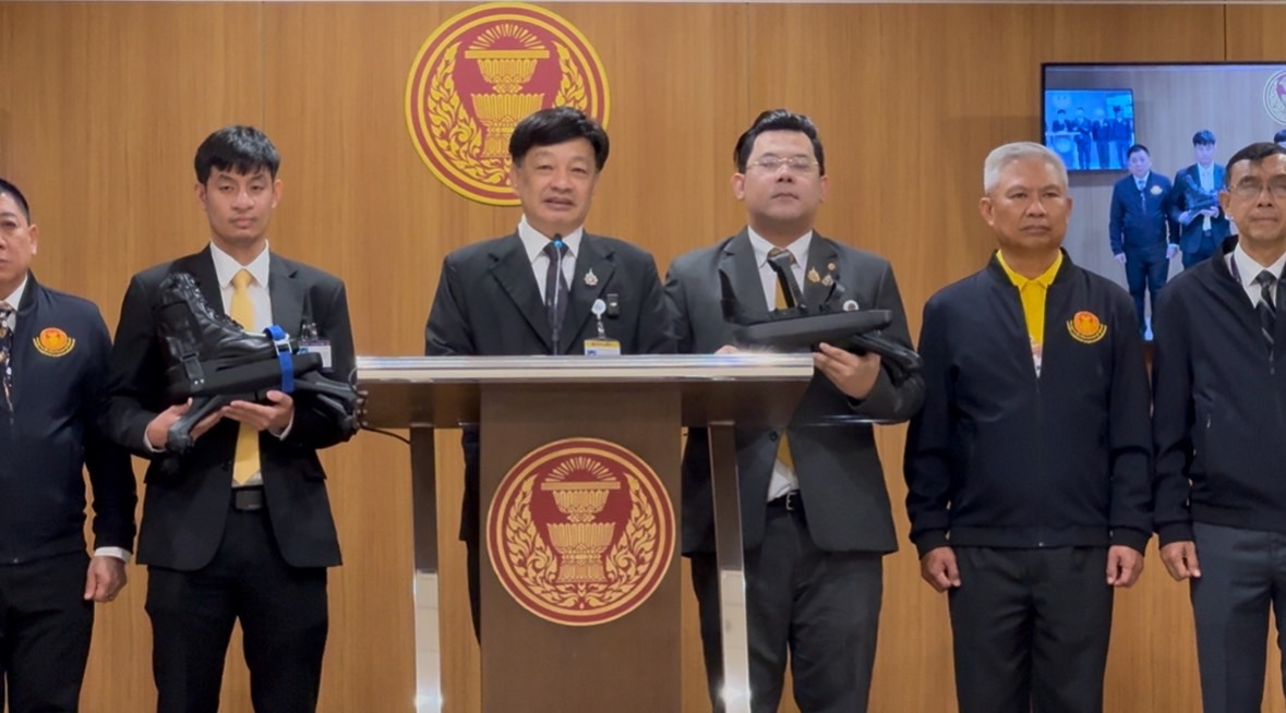 22ส.ค.2568- ที่รัฐสภา น.ต.วุฒิพงศ์ พงศ์สุวรรณ สว. ในฐานะคณะกรรมาธิการ (กมธ.) การทหาร และประธานคณะอนุกมธ.ด้านไซเบอร์และเทคโนโลยีและอุตสาหกรรมป้องกันประเทศ วุฒิสภา แถลงกรณีต้นแบบรองเท้านิลมังกร (สไปเดอร์บูท) เพื่อลดแรงระเบิด ว่า จากสถานการณ์ชายแดนไทย-กัมพูชาทหารไทยจำนวนมากที่สูญเสียขาจากทุ่นระเบิดของกัมพูชาส่งผลให้เกิดความสะเทือนใจกับประชาชน รวมถึงขวัญและกำลังใจของทหารแนวหน้า ทำให้มีการแชร์รองเท้าที่อยู่เคยใช้ระหว่างสงครามรัสเซียและยูเครน ซึ่งตนและทีมงานได้ไปค้นคว้าพบว่าสิ่งประดิษฐ์เหล่านี้ถูกคิดค้นมาตั้งแต่ก่อนปี 2000 แล้วโดยประเทศแคนาดา ซึ่งมีโมเดลชัดเจนที่ยูเครนนำไปใช้ เราจึงถอดแบบมาจากสิ่งประดิษฐ์นั้น