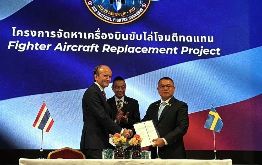 25 สิงหาคม 2568 - ที่ประเทศสวีเดน เวลา 12.20 น. ตามเวลาท้องถิ่น พล.อ.อ.พันธ์ภักดี พัฒนกุล ผู้บัญชากาาทหารอากาศ ได้ลงนามร่วมกับ FMV (องค์การบริหารจัดการ ยุทธภัณฑ์ทางทหารสวีเดน) กับบริษัท Saab สวีเดน ในส่วนของ offset policy ในโครงการจัดหาเครื่องบินขับไล่โจมตีทดแทน Gripen E/F ในเฟสแรก จำนวน 4 เครื่อง มูลค่า 19,500 ล้านบาท โดยมี นายมาริษ เสงี่ยมพงษ์ รัฐมนตรีว่าการกระทรวงต่างประเทศของไทย เป็นสักขีพยานในการลงนาม