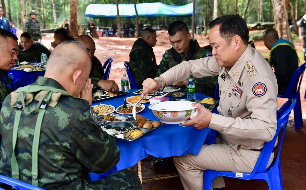 นายกฯอนุทิน ร่วมวงกินข้าวถาดหลุม ตักไข่พะโล้ให้กำลังพล พร้อมให้กำลังใจทหารแนวชายแดนสุรินทร์ ปลุกใจต้องชนะเท่านั้น สะกดคำว่าแพ้ไม่เป็น