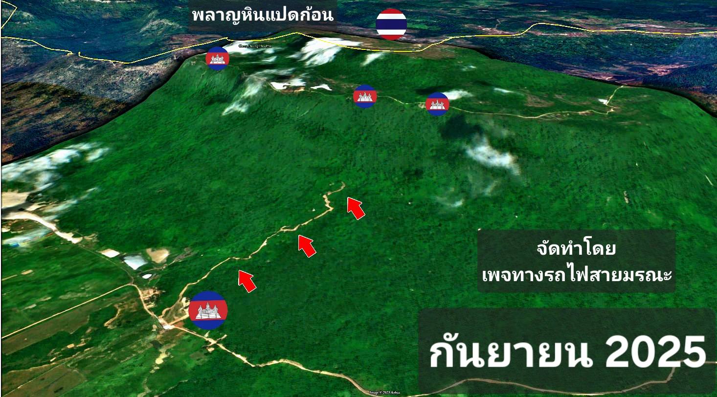 ปล. ปัจจุบันทหารเขมรที่อยู่บริเวณฐานที่พลาญหินแปดก้อน ยังมีการถ่ายคลิปวิดีโอ กิจกรรมต่างๆ ภาพการขนเสบียงอาหาร น้ำดื่ม ตลอดจนถึงภาพวิว ประกอบเพลง และการโพสลงใน TT และ FB เป็นประจำ ถ้าถนนเส้นใหม่สร้างเสร็จ พวกเราก็อาจจะได้เห็นรีวิวการใช้งานถนนใหม่นี้ครับ