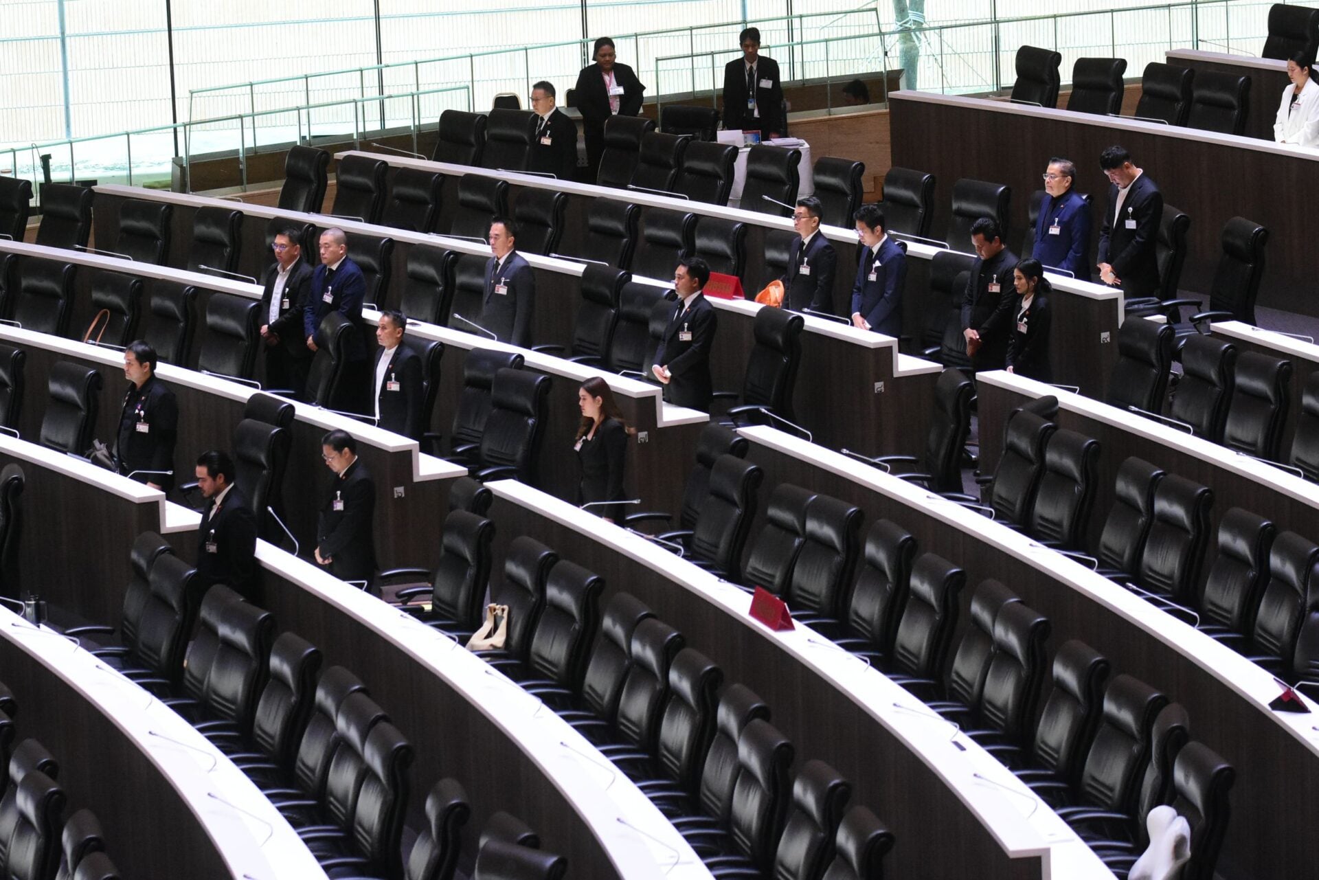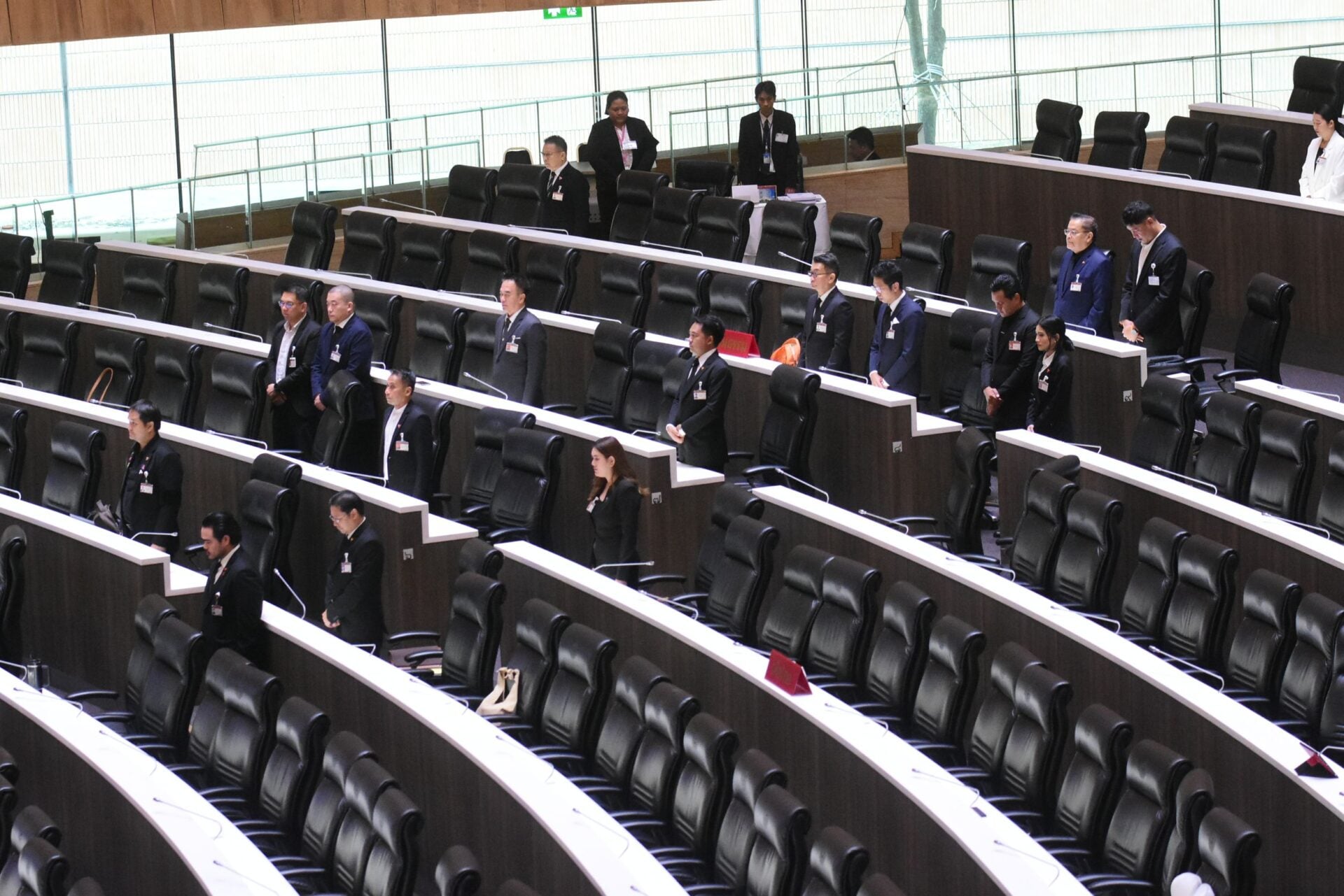 จากนั้นได้ขอให้สมาชิกยืนขึ้นเพื่อน้อมสำนึกในพระมหากรุณาธิคุณ และน้อมเกล้าน้อมกระหม่อมถวายอาลัยพระผู้เสด็จสู่สวรรคาลัย เป็นเวลา1นาที