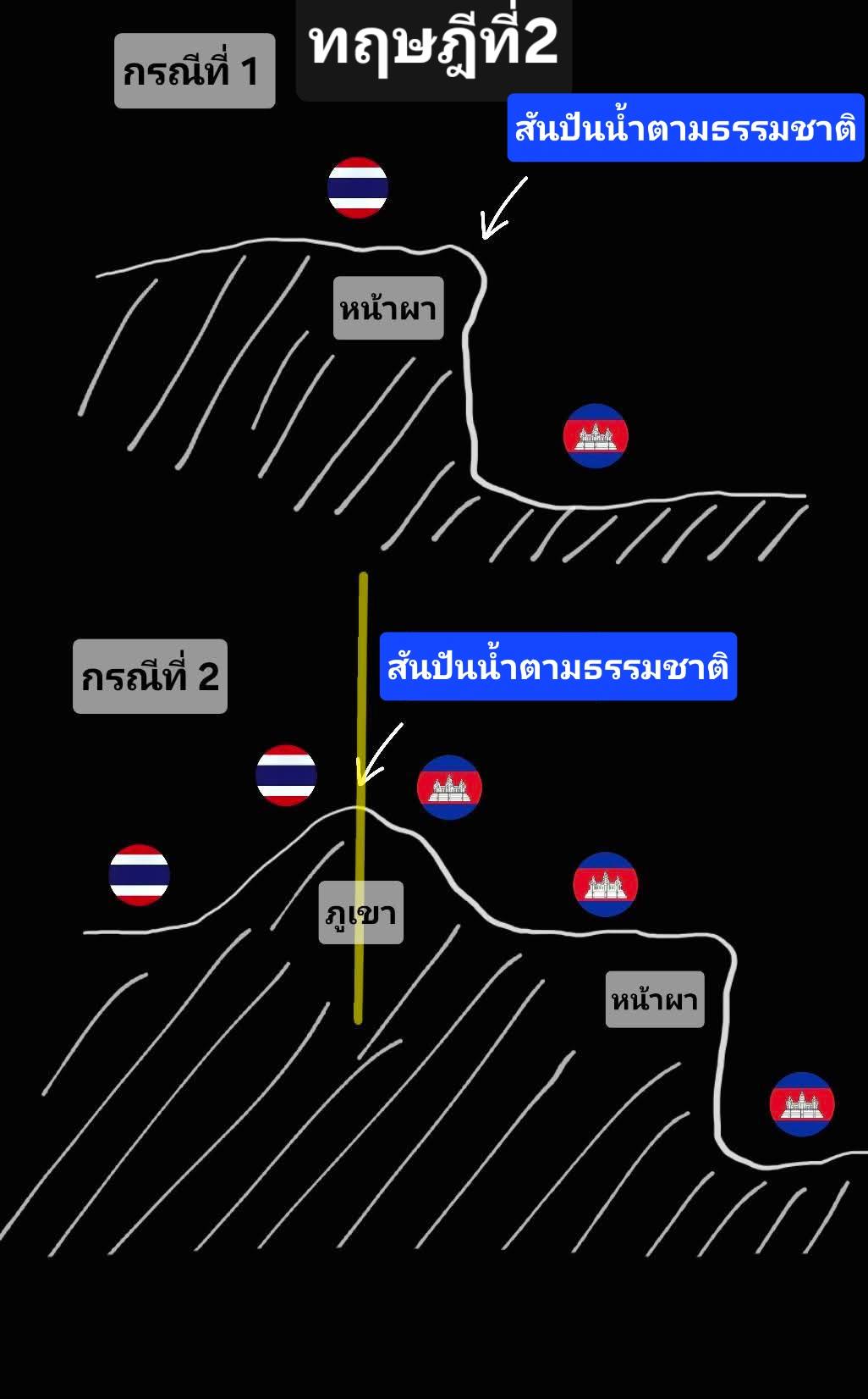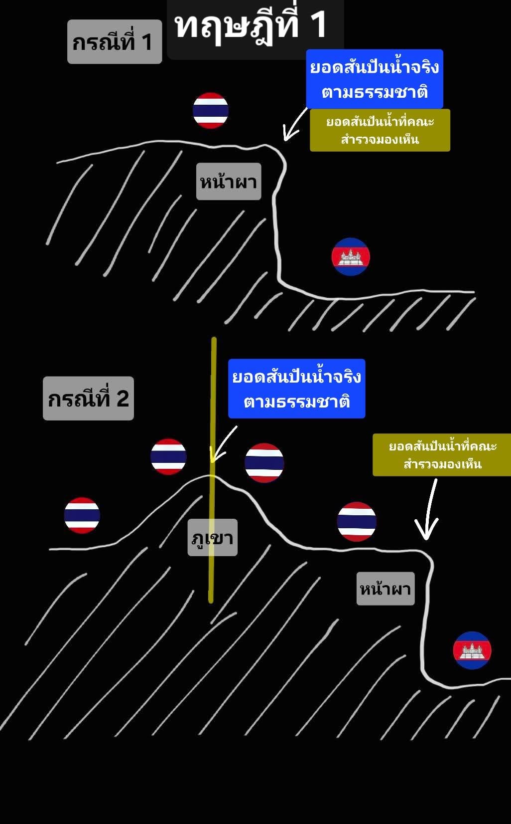 ตรงไหนที่เป็นยอดเขาสูงครึ่งที่น้ำไหลลงฝั่งไทย ไทยจะได้ไป ครึ่งน้ำไหลลงฝั่งเขมร เขมรก็จะได้ไป
