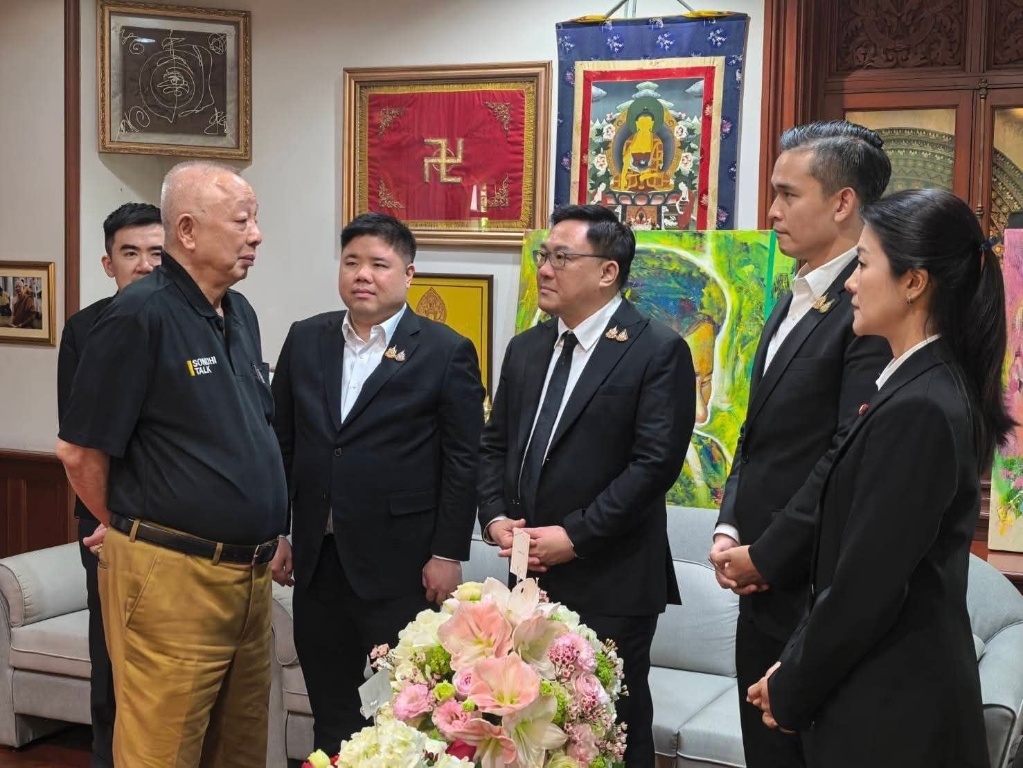 ในภาพดังกล่าวปรากฏนายจุลพันธ์ อมรวิวัฒน์ หัวหน้าพรรคเพื่อไทย พร้อมคณะผู้บริหารพรรค เข้าพบนายสนธิ ลิ้มทองกุล ผู้ก่อตั้งเครือผู้จัดการและอดีตแกนนำพันธมิตรประชาชนเพื่อประชาธิปไตย ที่บ้านพระอาทิตย์ เพื่อร่วมอวยพรวันคล้ายวันเกิดครบรอบ 78 ปี