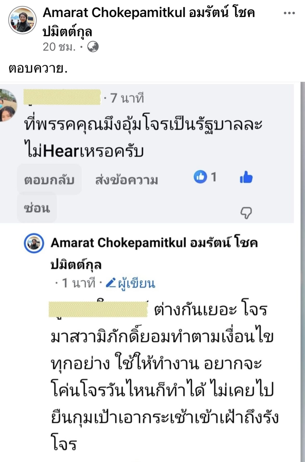 กลุ่มผู้สนับสนุนพรรคประชาชน เคลื่อนไหวในโซเชียลอย่างคึกคัก โดยเฉพาะ นางอมรัตน์ โชคปมิตต์กุล อดีต สส.พรรคก้าวไกล ที่ปัจจุบันเป็นหนึ่งในผู้สนับสนุนคนสำคัญของพรรคประชาชน ได้โพสต์ตอบกลับชาวเน็ตรายหนึ่งที่เข้ามาคอมเมนต์ว่า