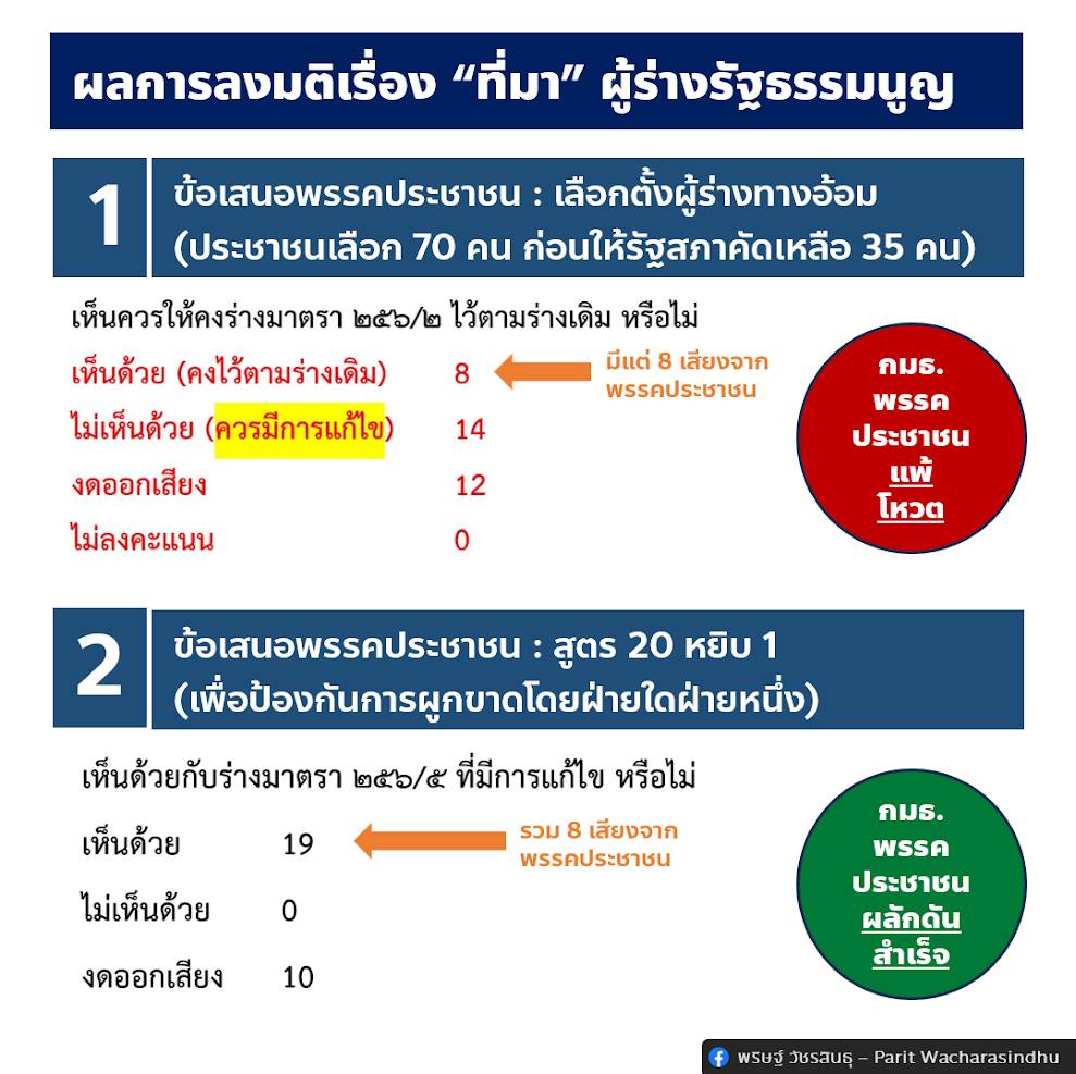 [ ผลการลงมติ กมธ. เรื่อง “ที่มา” ผู้ร่างรัฐธรรมนูญ วันนี้ = แพ้ 1 เรื่อง / ชนะ 1 เรื่อง ]