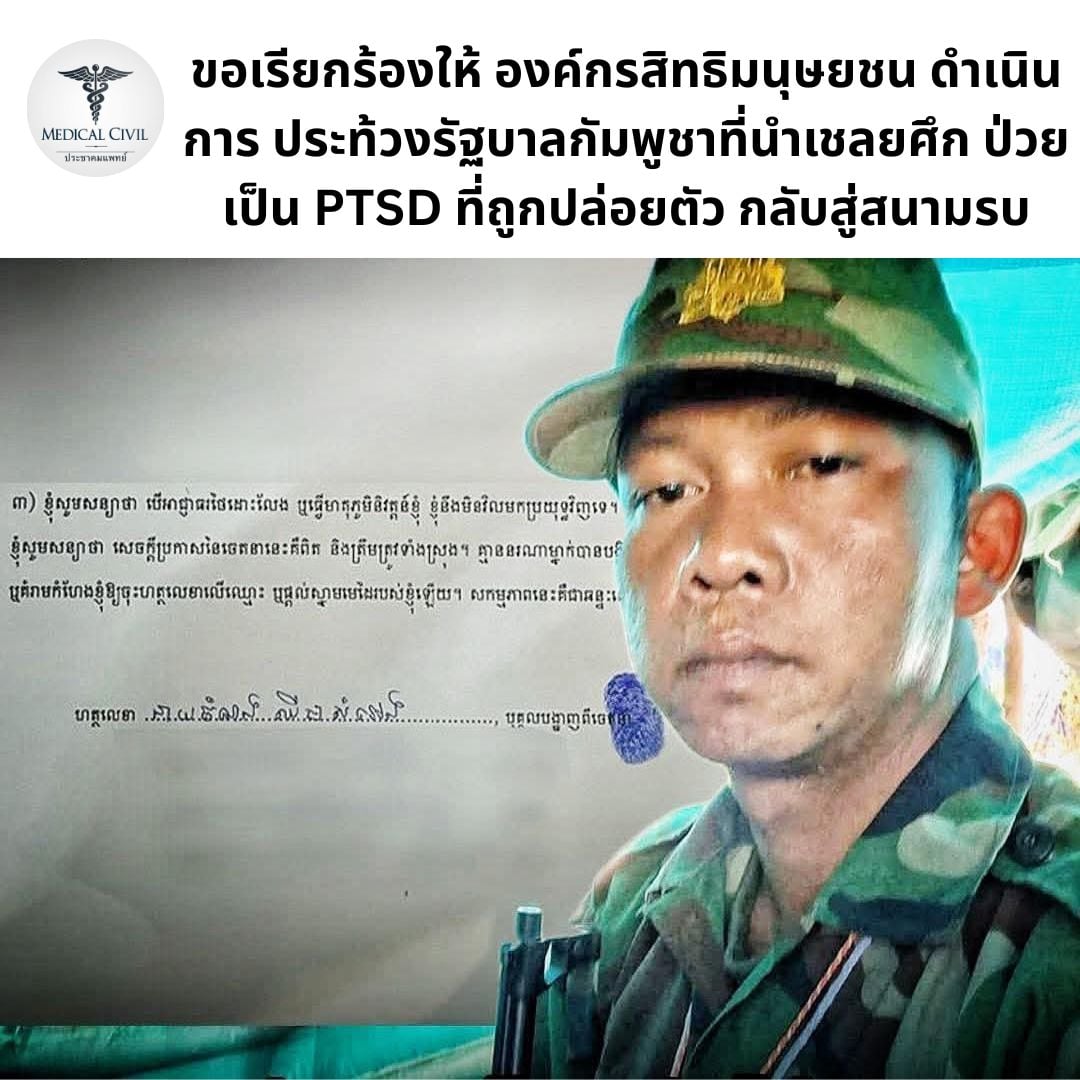'ประชาคมแพทย์' ชี้การนำอดีตเชลยศึกที่มีอาการทางจิตเวชกลับสู่สนามรบของกัมพูชา เป็นการละเมิดหลักมนุษยธรรมสากล ทำร้ายมนุษย์ที่มีความเปราะบางทางจิตใจอย่างร้ายแรง ขัดต่ออนุสัญญาเจนีวา จี้กสม. ICRC ,UNHRC และ OHCHR ตรวจสอบแล้วให้กัมพูชารับผิดชอบ