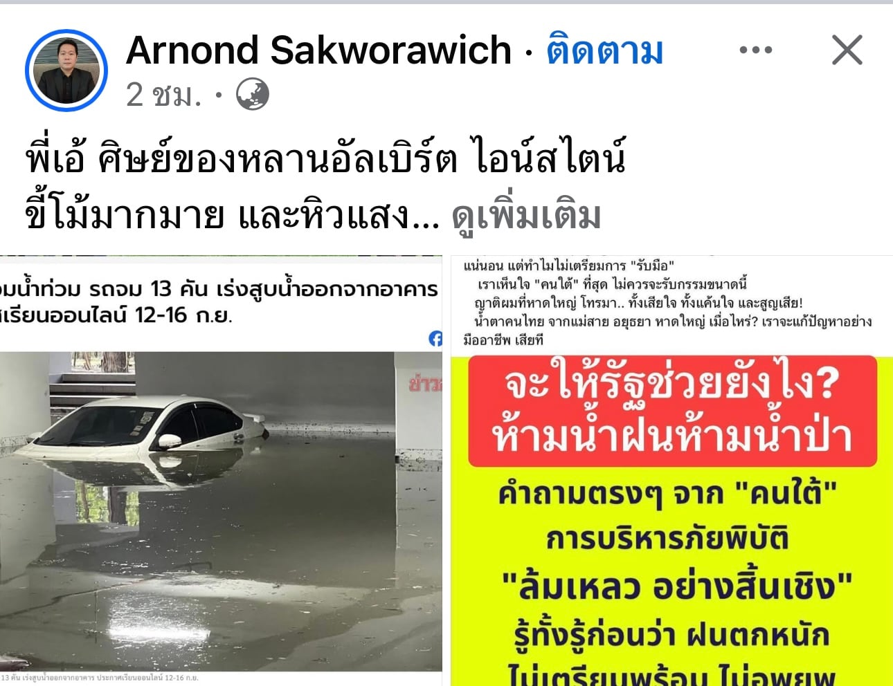 งั้นผมไม่ด่า ผมแค่ถามกลับว่า เก่งนักหนา ทำไมสถาบันเทคโนโลยีพระจอมเกล้าเจ้าคุณทหารลาดกระบัง(สจล.) ที่พี่เอ้เคยเป็นอธิการบดี ยังมีน้ำท่วมวิกฤติอยู่บ่อย ๆ บ้านตัวเองพี่เอ้ยังป้องกันน้ำท่วมไม่ได้เลย อย่าไปชี้หน้าด่าใครเลยครับ