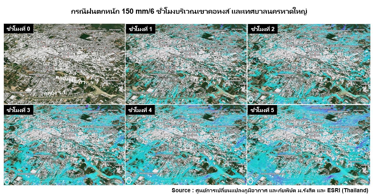 ผมได้แนบแบบจำลองรายละเอียดสูง เพื่อเป็นบทเรียนที่สำคัญจากเหตุการณ์กรณีฝนตกหนักที่เขาคอหงส์ 150 mm ภายใน 6 ชั่วโมงจะเกิดน้ำไหลหลากทุกๆชั่วโมงตามเฉดสีฟ้า และน้ำเงิน (ดูรูปประกอบ) การประเมินความเสี่ยง และความรุนแรงของสถานการณ์ ประเทศญี่ปุ่นยึดหลักการ 最善を願い最悪に備える (เราหวังว่าสถานการณ์ที่ดีจะเกิดขึ้น แต่เราต้องเตรียมพร้อมรับสถานการณ์ที่เลวร้ายที่สุด) จึงอยากจะให้ผู้นำท้องถิ่นตระหนักในวลีนี้น่ะครับ