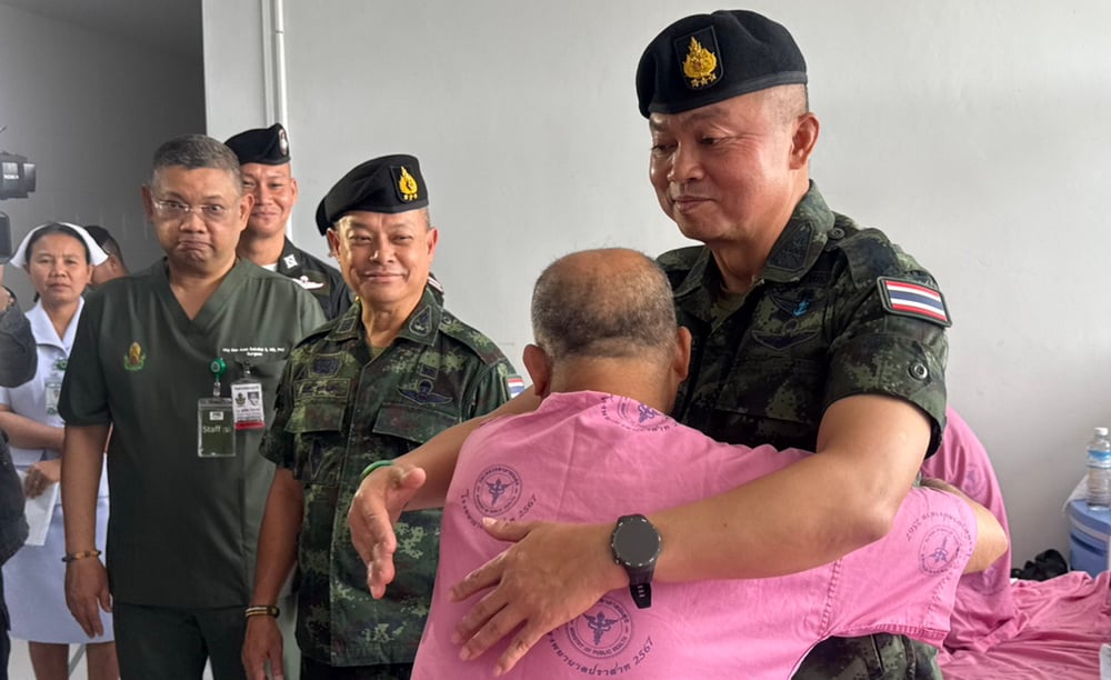 "แม่ทัพกุ้ง" เยี่ยมทหารบาดเจ็บ รพ.ในจ.สุรินทร์ พร้อมให้กำลังใจทหารที่กำลังสู้รบหน้าแนว คาดกัมพูชาหวังยิง BM21 ใส่ รพ. แต่พลาดเป้า ระบุ “ผบ.ทบ.” ลงพื้นที่ติดตามสถานการณ์ ทภ.1 -ทภ.2