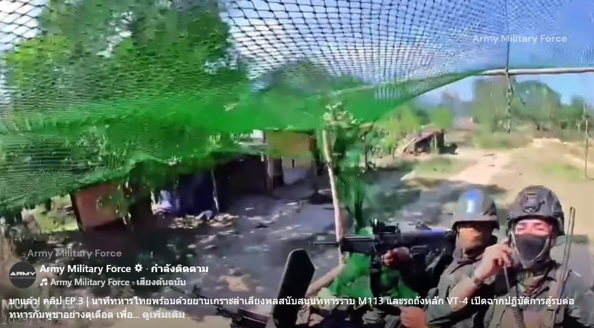 23 ธ.ค. 2568-เพจ Army Military Force เผย คลิป EP.3 | นาทีทหารไทยพร้อมด้วยยานเกราะลำเลียงพลสนับสนุนทหารราบ M113 และรถถังหลัก VT-4 เปิดฉากปฏิบัติการสู้รบต่อทหารกัมพูชาอย่างดุเดือด เพื่อเข้ายึดคืนพื้นที่ช่องอานม้า อ.น้ำยืน จ.อุบลราชธานี เมื่อช่วงเช้าของวันที่ 16 ธันวาคมที่ผ่านมา โดยปัจจุบันทหารไทยสามารถยึดคืนพื้นที่ช่องอานม้าได้สำเร็จ 100% พร้อมสถาปนาความมั่นคงและเชิญธงชาติไทยปักเหนือพื้นที่ดังกล่าวอย่างสง่างาม.