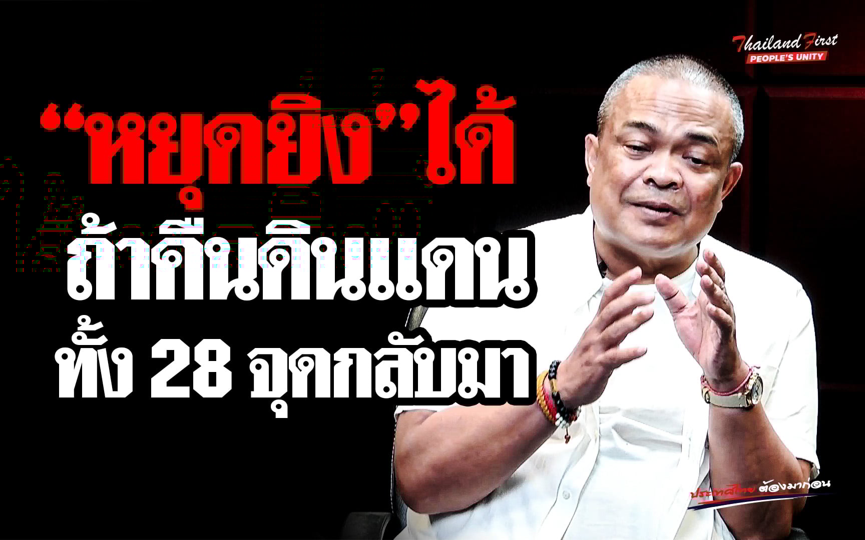 23 ธ.ค. 2568- นายจตุพร พรหมพันธุ์ วิทยากรคณะหลอมรวมประชาชน เฟซบุ๊คไลฟ์รายการประเทศไทยต้องมาก่อน โดยระบุว่า การเจรจาหยุดยิงสงครามไทย-กัมพูชาเพื่อให้เกิดสันติภาพย่อมทำได้เมื่อไทยได้ดินแดนทั้ง 28 จุดที่กัมพูชารุกล้ำครอบครองไว้กลับคืนมา