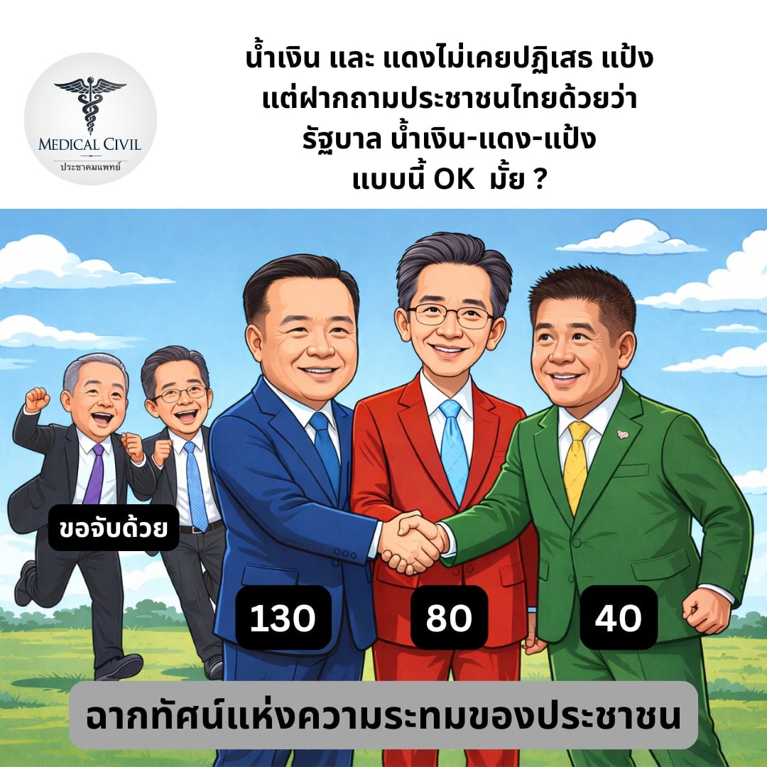 31 ธ.ค.2568 - ทีมการเมือง เพจประชาคมแพทย์ โพสต์เนื้อหาพร้อมกราฟฟิกบนเฟซบุ๊กในหัวข้อ “คนไทย…อย่าความจำสั้น เพราะถ้าลืม เราจะได้เห็น ฉากทัศน์แห่งความระทมของประชาชน” ระบุว่า Scenario ที่ประเทศชาติไม่ควรปล่อยให้สิ้นไร้ไม้ตอกไปถึงจุดนั้น ไม่ว่าท่านจะ ชาตินิยมมากเพียงใด